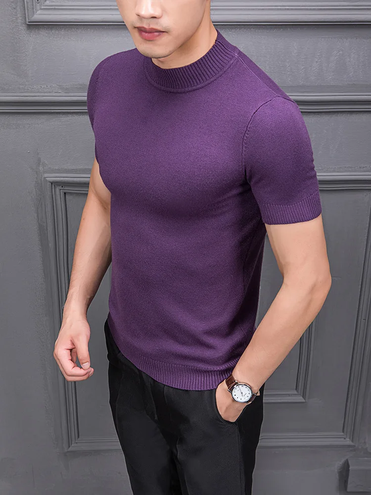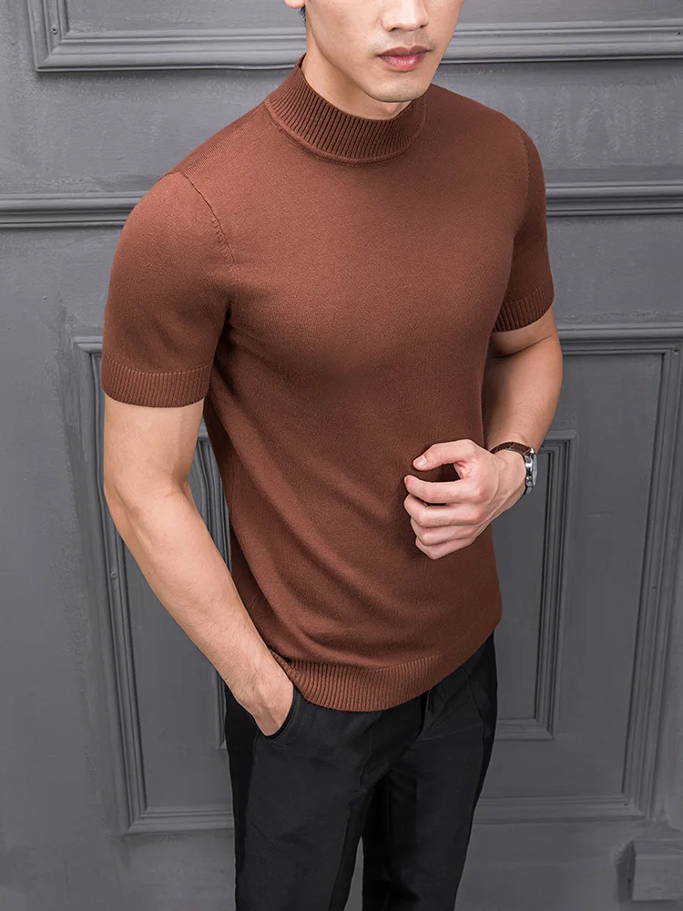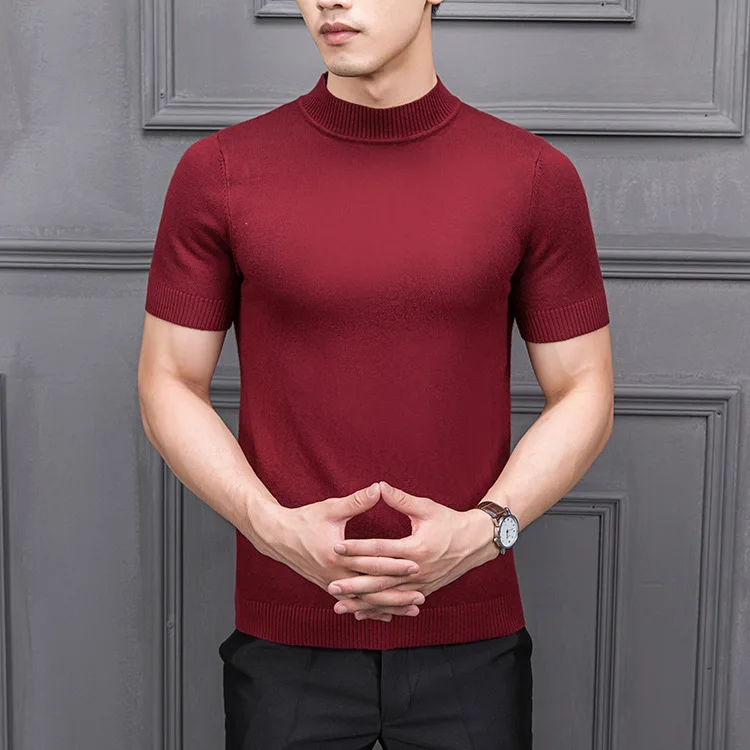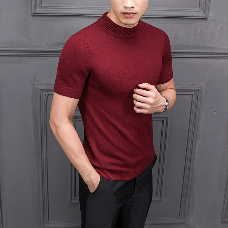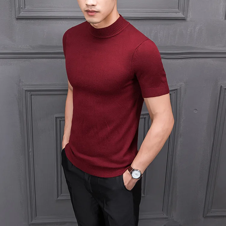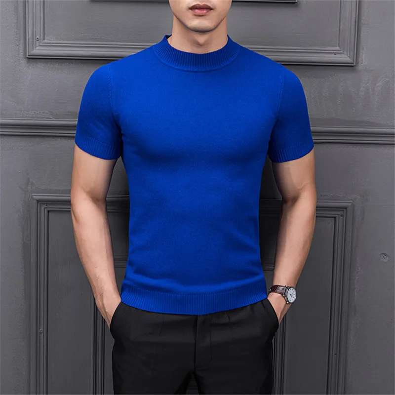 Мужская хлопковая футболка, свитер, однотонная водолазка с высоким воротником, высокое качество, трикотажная Повседневная футболка с коротким рукавом