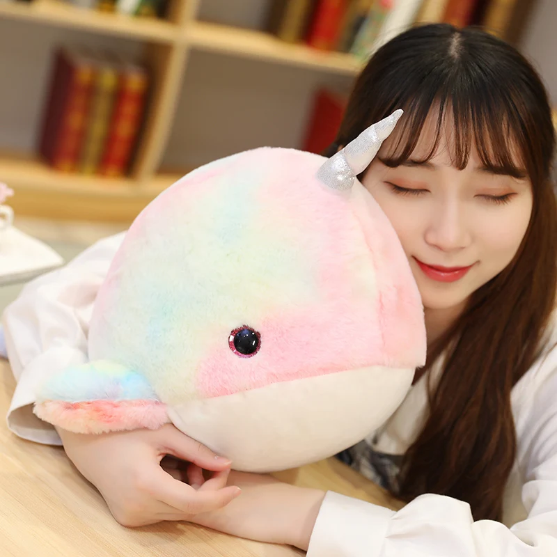 Плюшевые игрушки, милые, разноцветные, Нарвал, набивной КИТ, единорог, рыба, кукла, мягкие животные, подушка для девочек, подарок на день рождения, 2845 см
