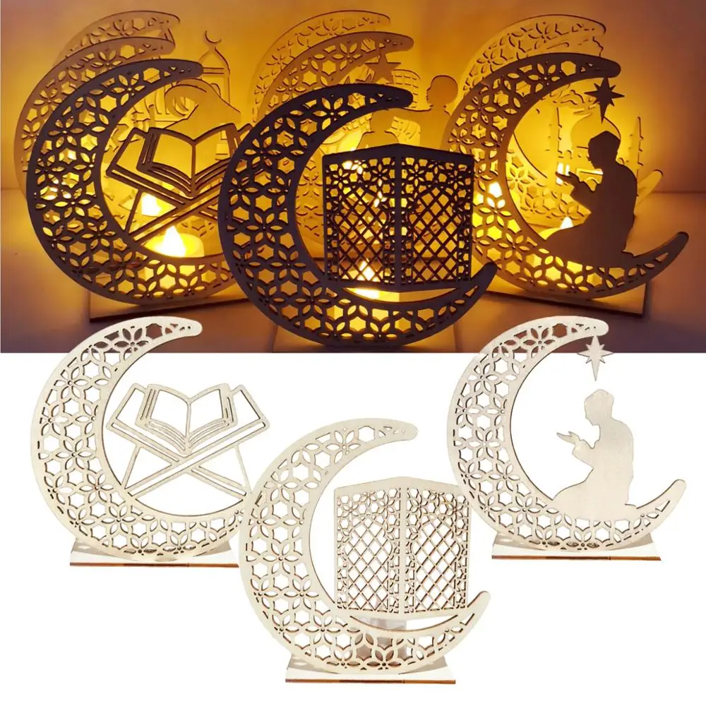 Луна деревянная ремесло ИД Мубарак декор украшения на Рамадан фонарь Рамадан Карим исламский мусульманский Ид аль-Фитр Декор принадлежности