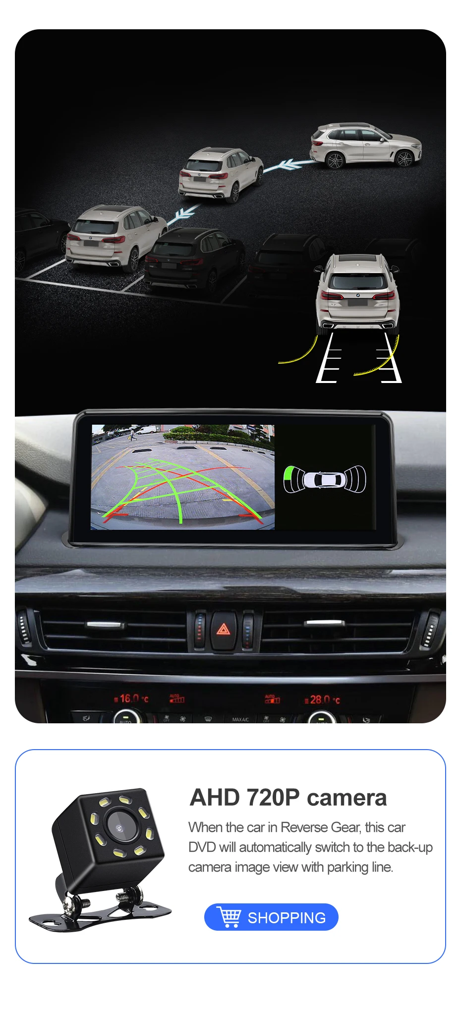 >>> Это головное устройство может автоматически поддерживать автомобильную камеру 360 / вторичного рынка и заводские датчики парковки на экране при включении задней передачи. Это поможет вам сосредоточиться на заднем движении и парковке автомобиля.универсальная камера - подарок для вас в комплекте.