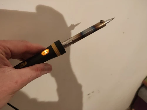 Хороший паяльник. горячий. в темноте видно, что красный если на камеру ещё ярче видно. работал минут 15 пока все прогорело. Немного шевелится ручка при прогреве, надеюсь на критично. ручка не горячая, работать удобно. постараюсь его включить на несколько часов проверить ее сгорит ли. дополню отзыв. в остальном хороший, ну как на такую цену сойдёт.