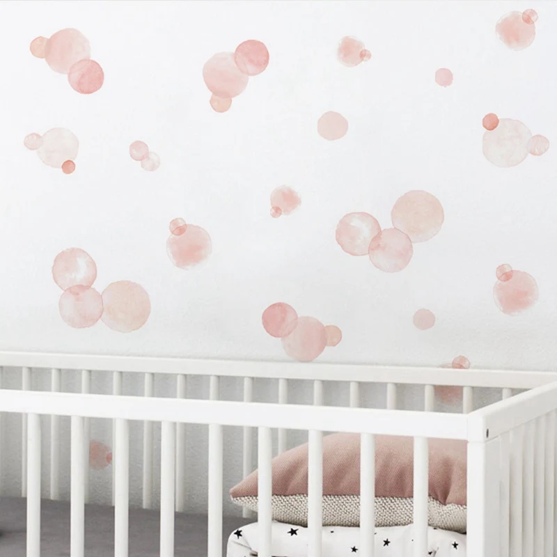 Акварельные Розовые Настенные наклейки в горошек для детской комнат...