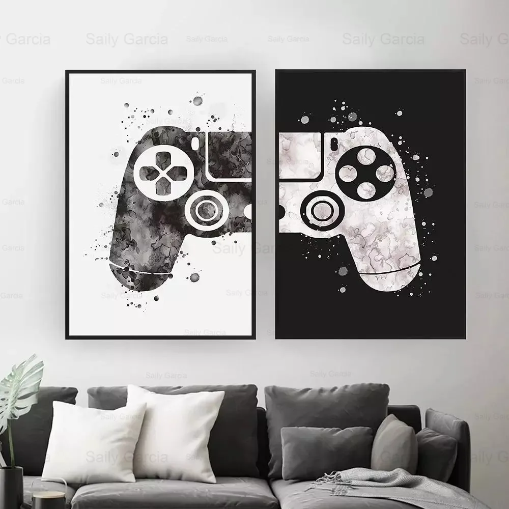 Черно-белый простой плакат с игровой консолью, развлекательная Картина на холсте, украшение для дома, спальни, Крафтовая печать