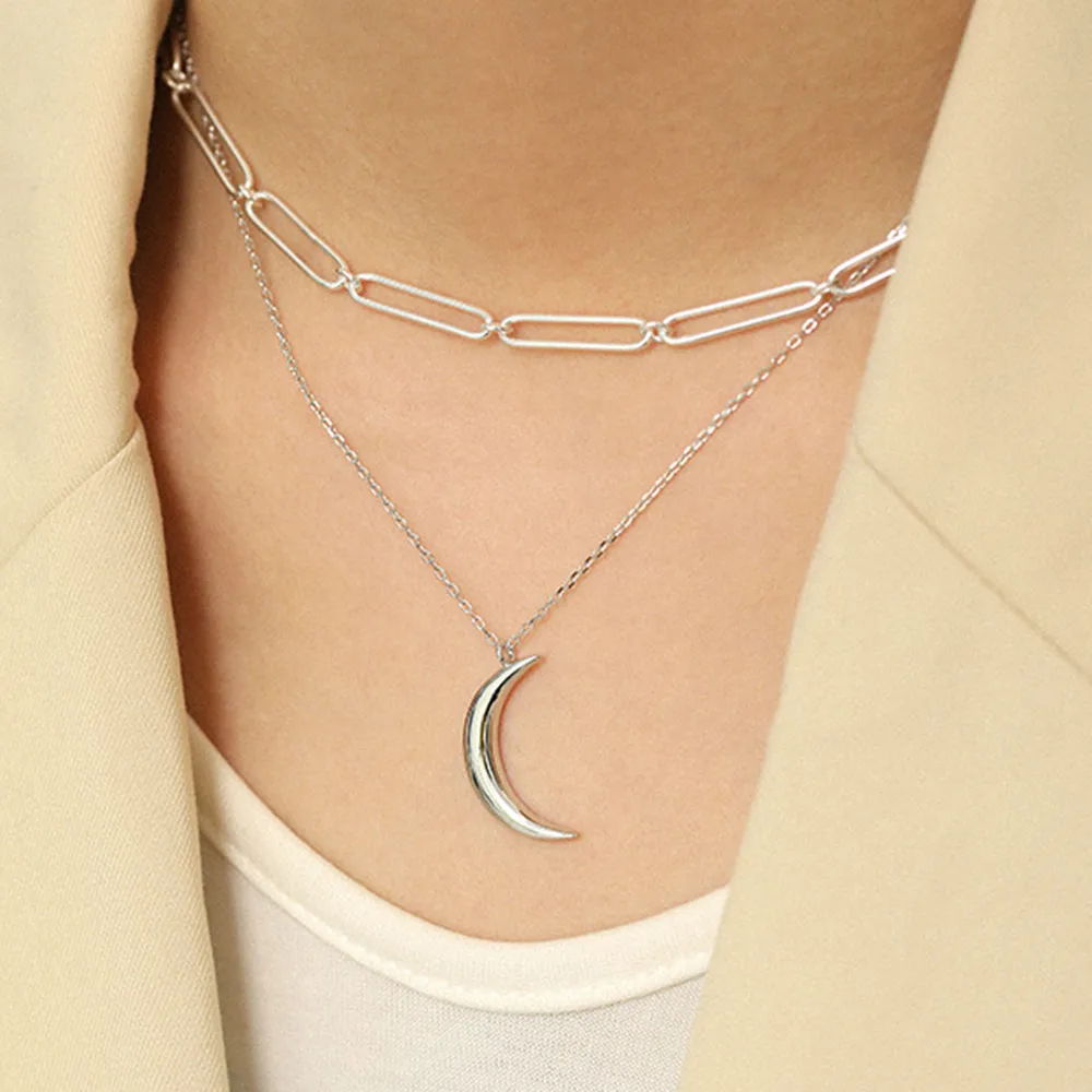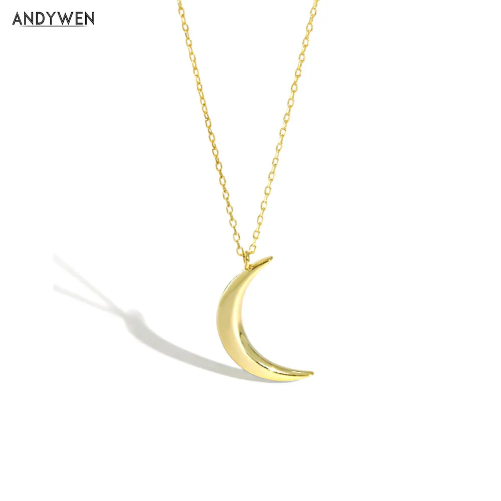 Ожерелье ANDYWEN из серебра 925 пробы с длинной цепочкой и кулоном в виде Луны, модное роскошное женское ожерелье в стиле рокпанк, рождественские украшения для женщин, 2020