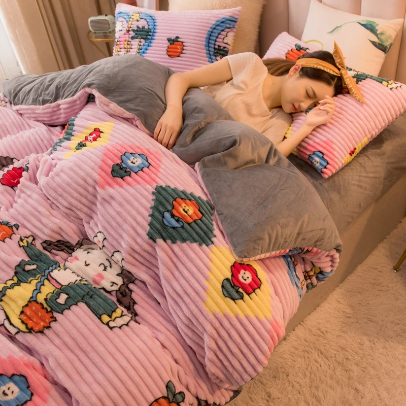 Комплект постельного белья из плотной фланели, с бархатным пододеяльником и наволочками