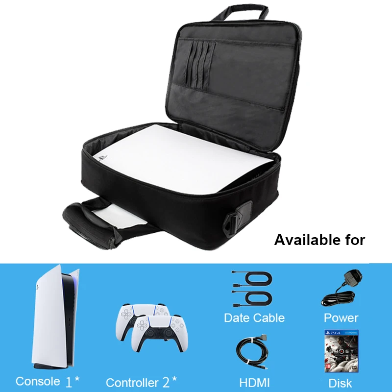 Многофункциональная сумка для хранения большой емкости, Вмещает 1 * PS5 консоль, 2 * PS5 dualsense контроллеры, 1 * PS5 bluetooth наушники, 1 * пульт дистанционного управления 1 * Камера и другие небольшие аксессуары для playstation 5