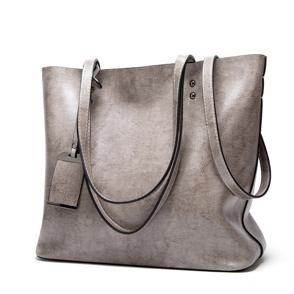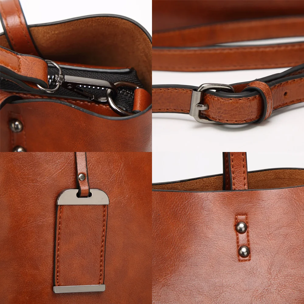 Вощеная кожаная сумка-мешок для женщин, простая сумочка на двойном ...