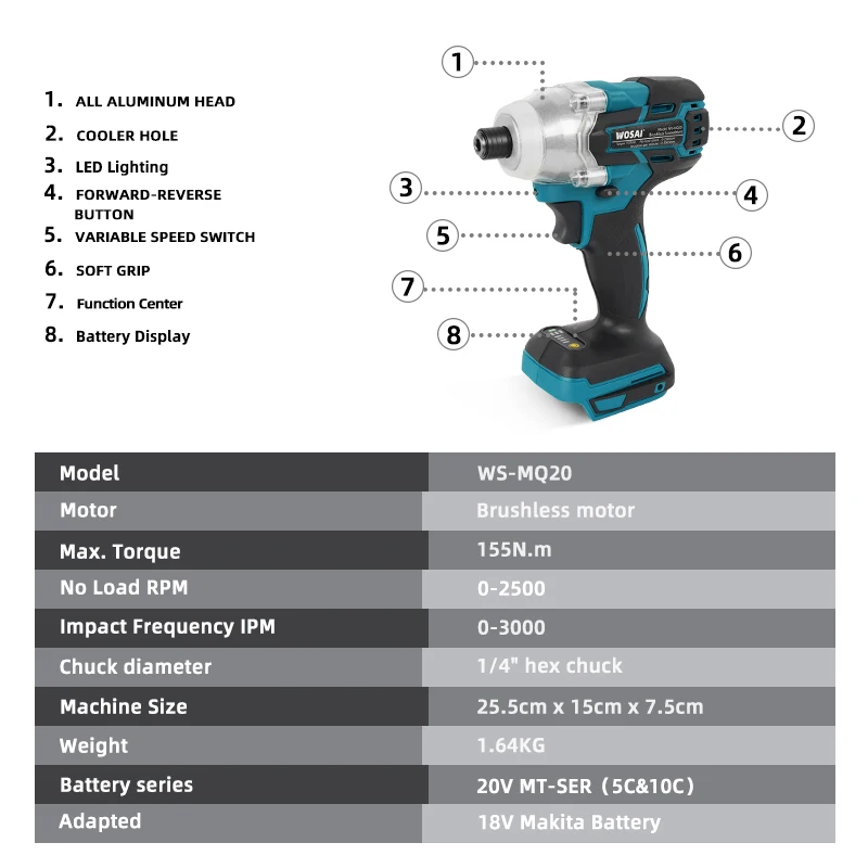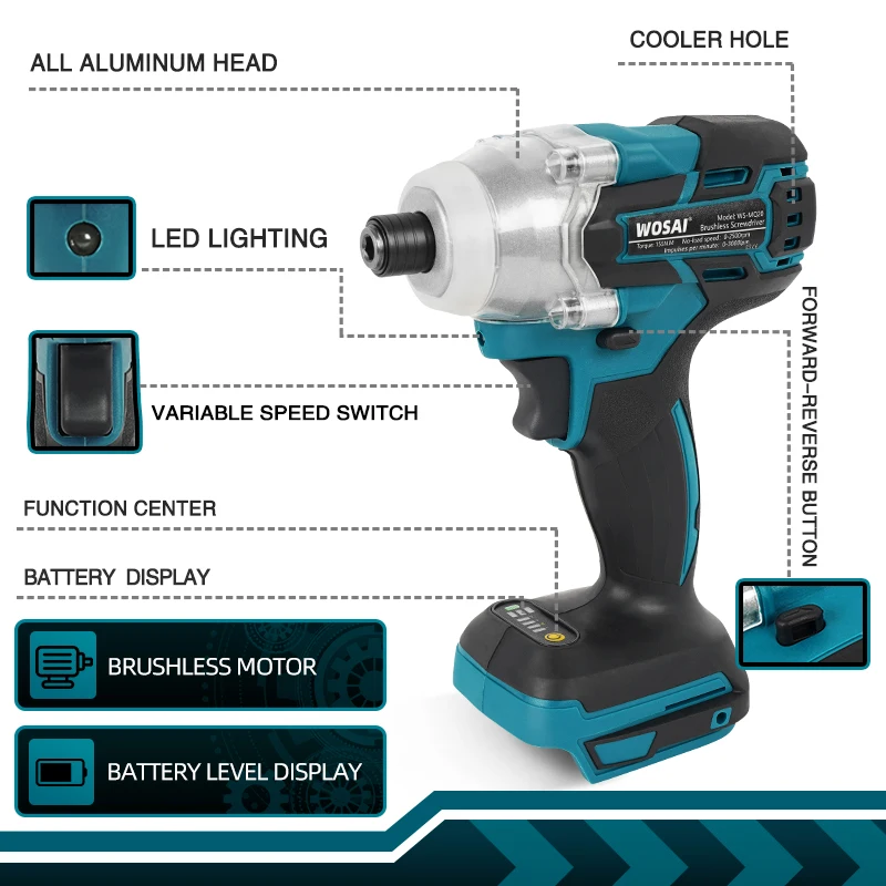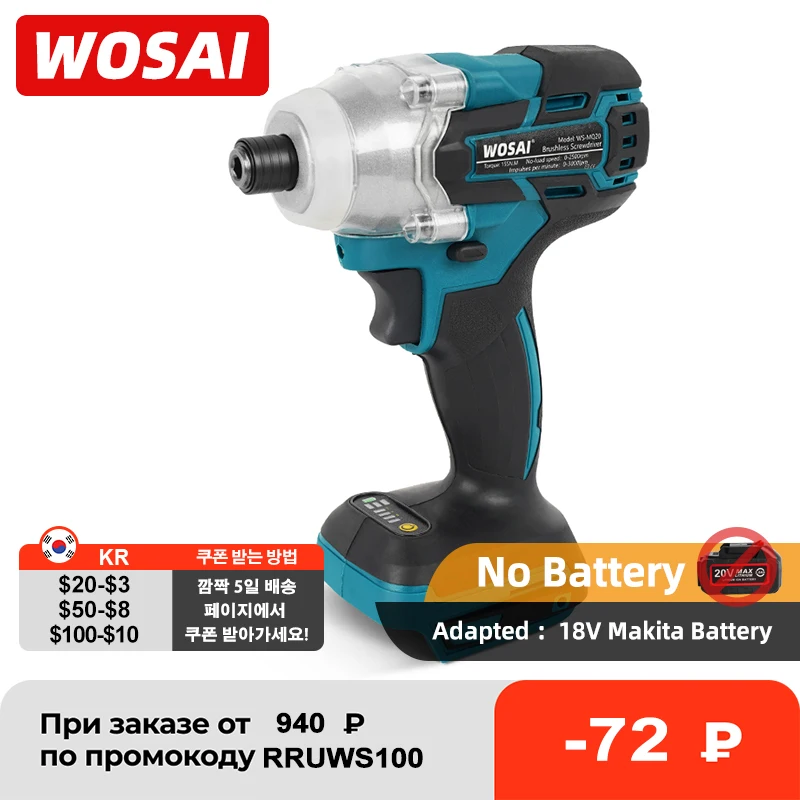 WOSAI MT-Series 20 в Беспроводная электрическая отвертка Бесщеточный ударный ключ Аккумуляторная дрель для 18VMakita литиевая батарея