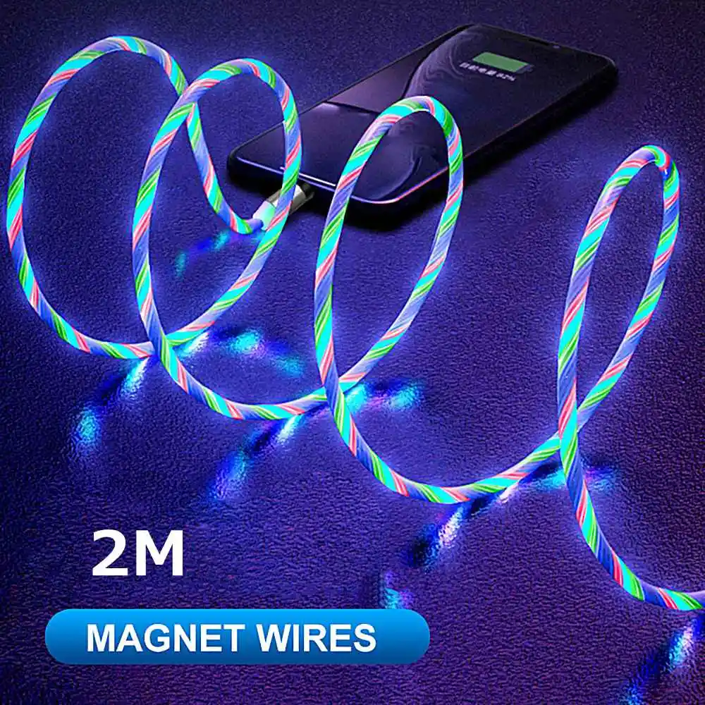 2 м Магнит Micro Usb кабель для мобильного телефона для iphone X 11 Xiaomi mi8 9Т подходит для устройств redmi note 7 Samsung тип C зарядное устройство 3 в 1 световой шнур