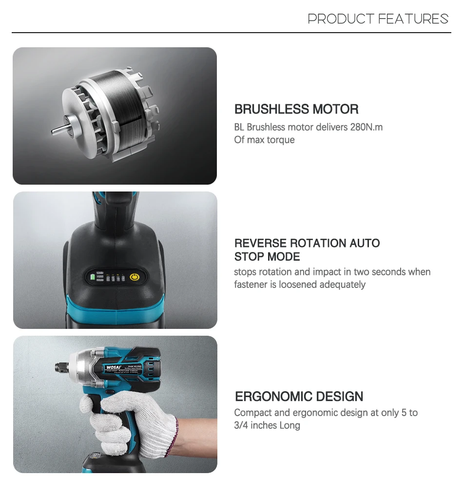 WOSAI MT-Series 20 в бесщеточный беспроводной электрический ударный гайковерт перезаряжаемый 12 торцевой гайковерт электроинструмент для аккумулятора Makita 18 в