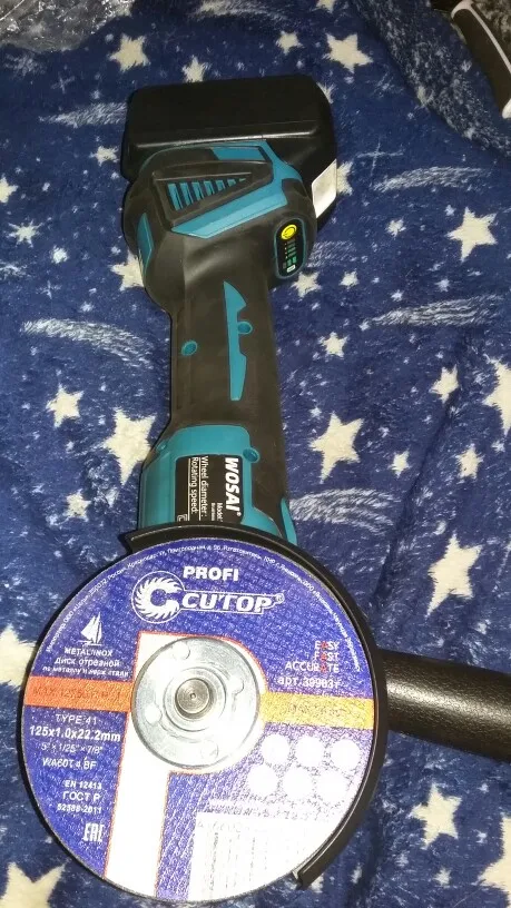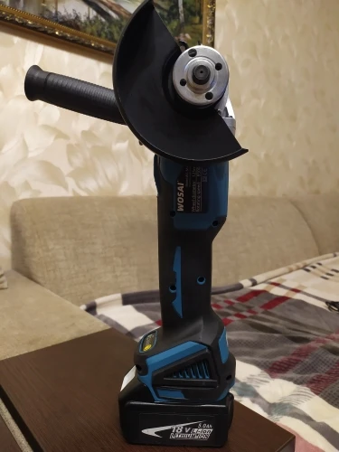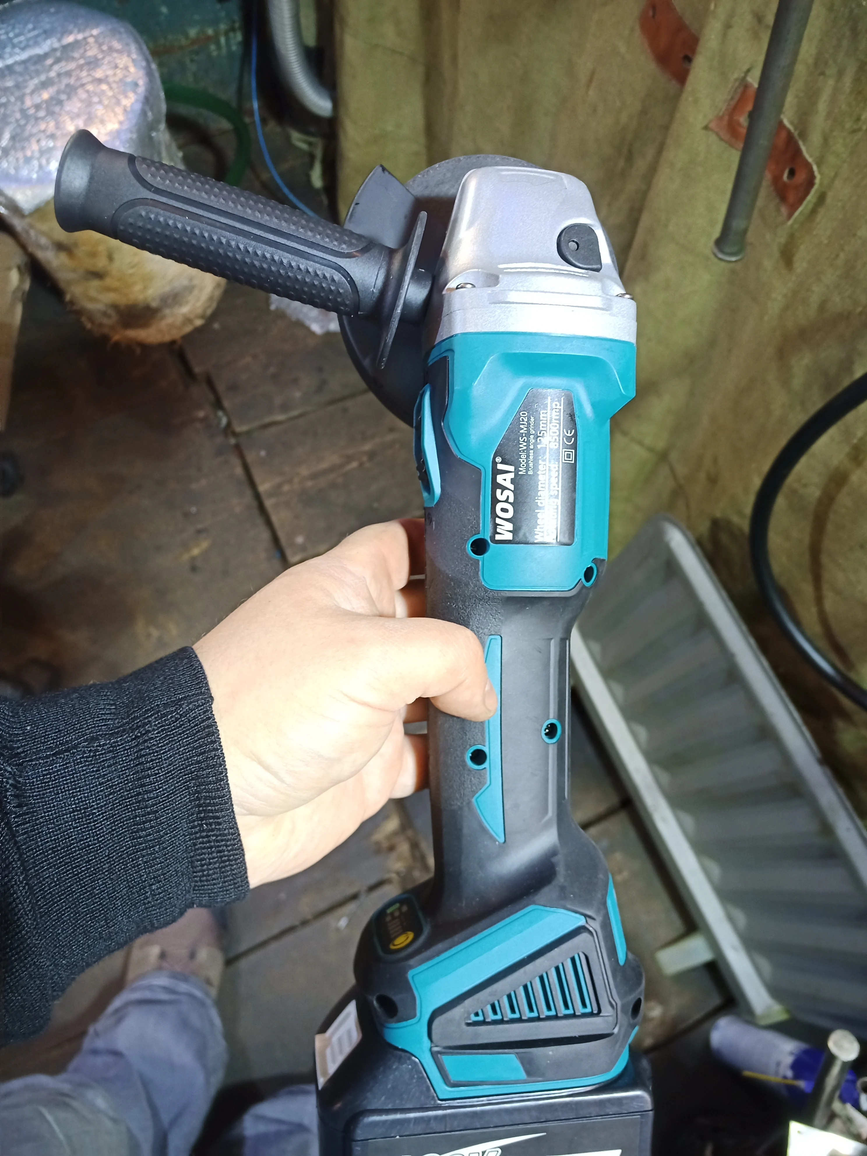 Болгарка хорошая, пилить не пробовал, работает в паре с акумами waitley, 6 ампер. Покупал за 2 тыщи ровно. Имеются облои, придется доработать надфилем, так же приризиненная часть в облоях, удалил канц ножом. Работает отлично. Ручка как по мне тонковвта и коротковата, при кожухе не могу захватить ручку нормальнл, на фото показал. Кое где коцки на резине.С акумом достаточно увесистая. режимы регулируются, только пока не понял какие там скорости. В редукторе "Мало смазки". Удалю и залью макитовскую смазку для редукторов, литол не набивайте он будет греть редуктор. В целом за 2 куска это шедевр и мои придирки это такое себе за цену.
