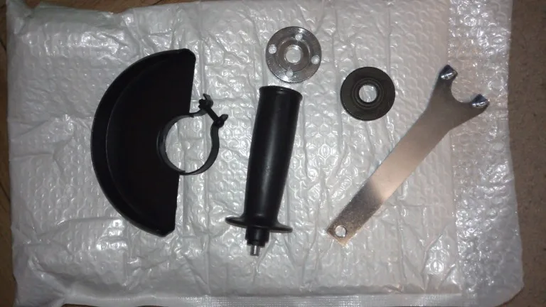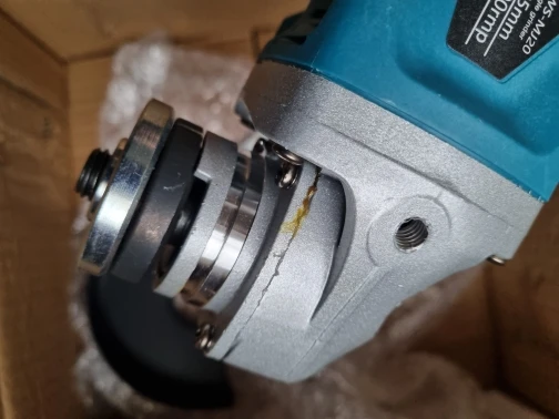 в принципе огонь! упаковка рваная и заключенная скотчем. сама болгарка рабочая и удобная. не понравился выступ на редукторе. трет по шайбе. на фото фидно. придется срезать. зачем он- не понятно. а так доволен. респект за инструмент. только смазать нужно по звуку редуктор сухой.