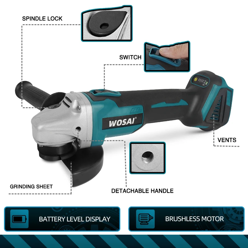 WOSAI MT-Series 20 в 125 мм бесщеточный беспроводной угловой шлифовальный станок с переменной скоростью резки полировщик для 18В батареи Makita