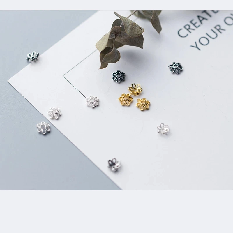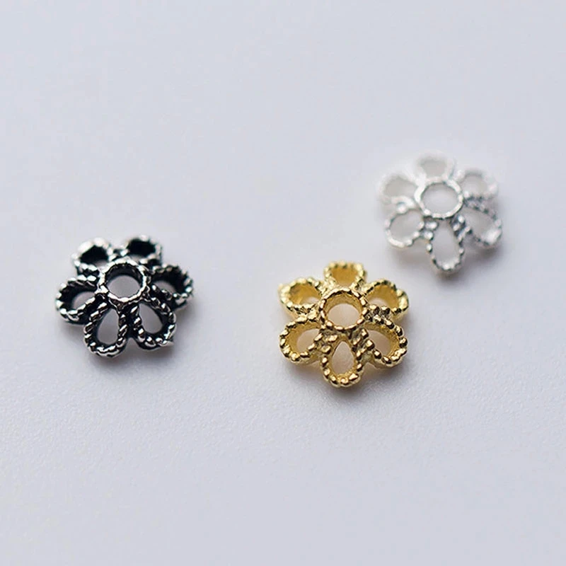 Колпачки для бусин из серебра 100% пробы, 6 мм, 10 шт.лот