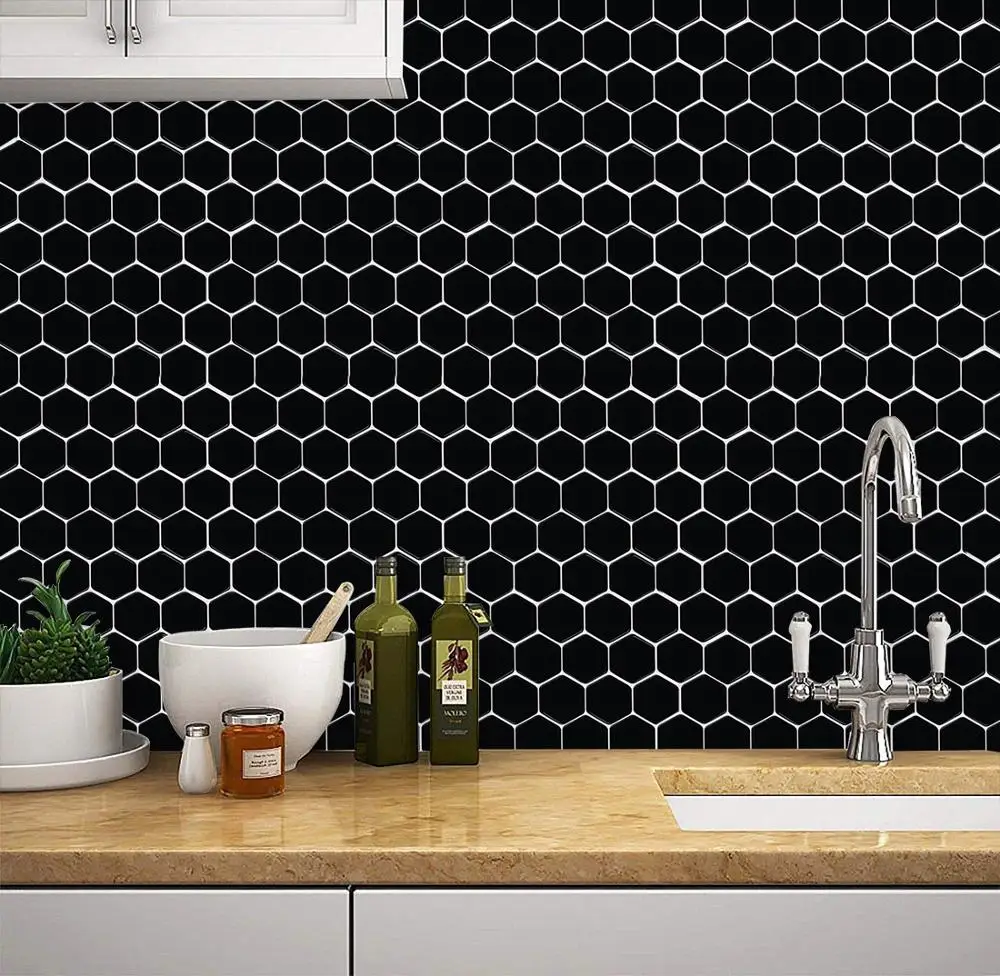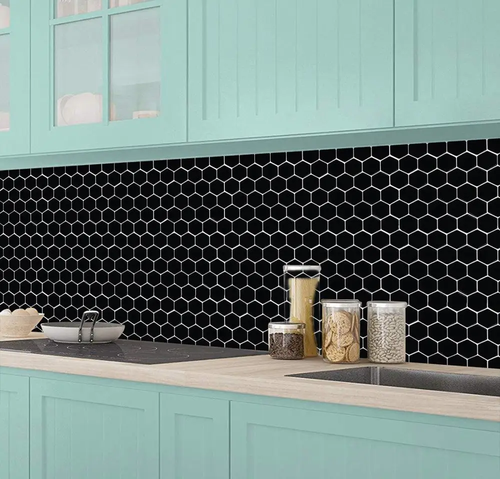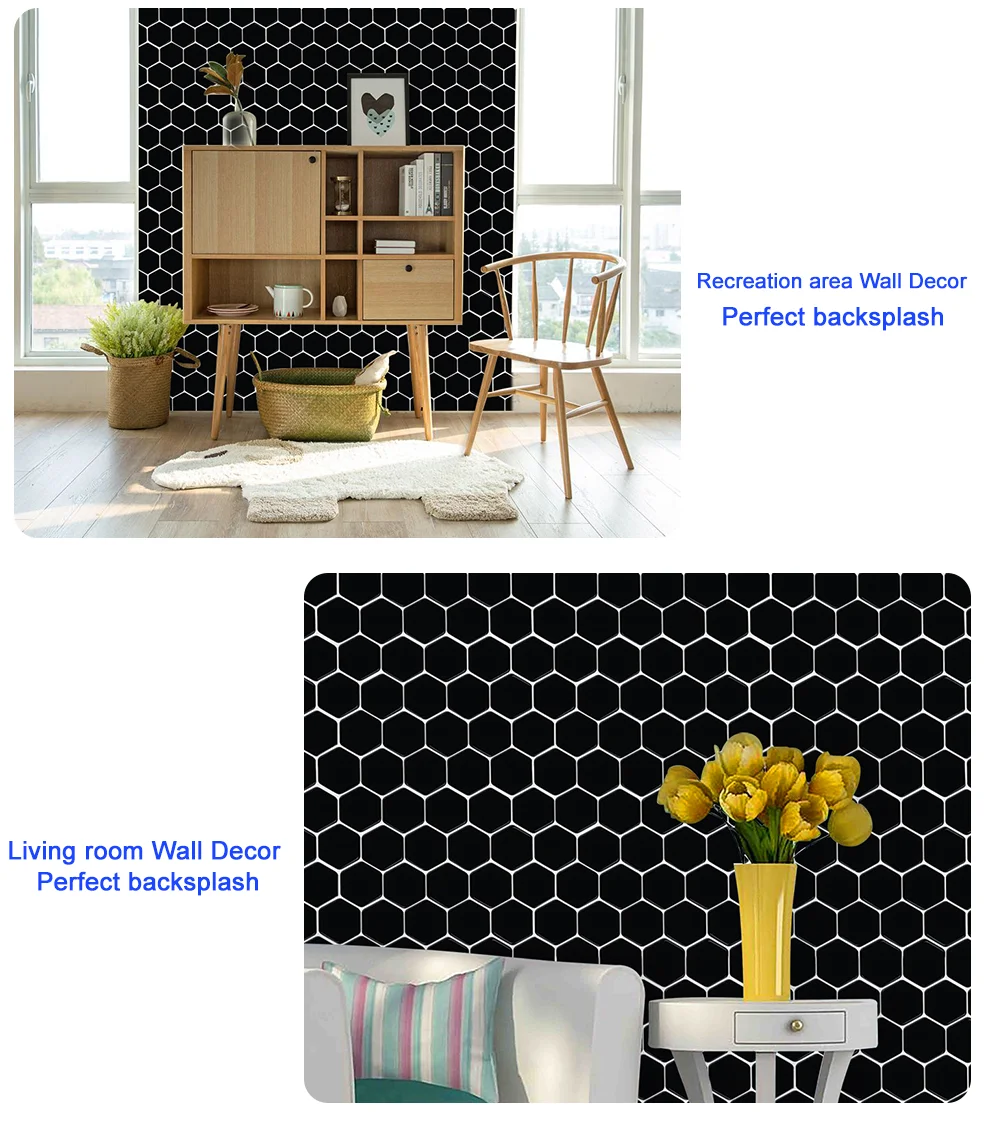 Плитку можно легко установить непосредственно на существующие панели или гладкую поверхность. Специально разработан для кухонного фартука и ванной фартука, плитка устойчива к жару плиты и влажности ванных комнат.
