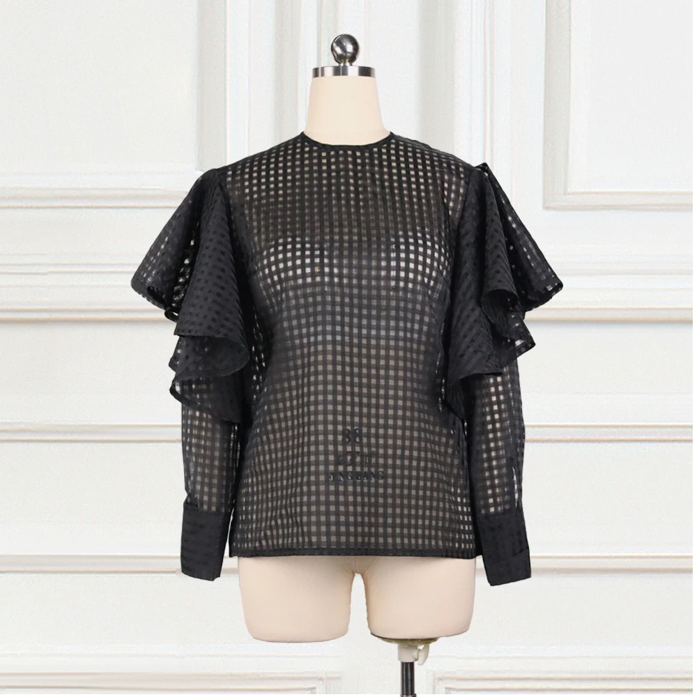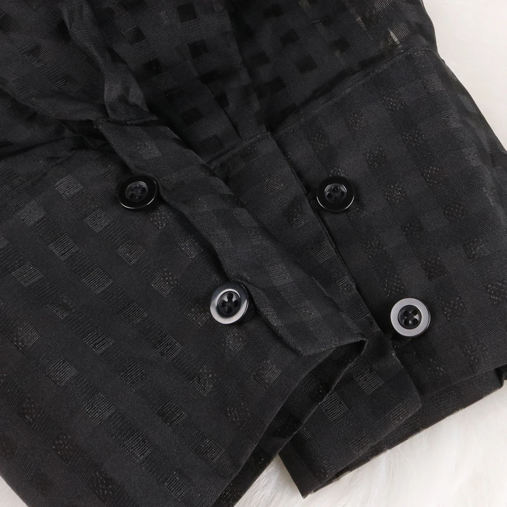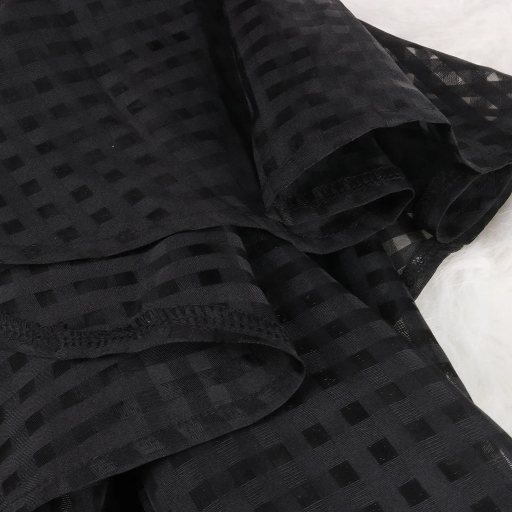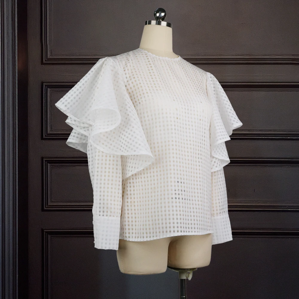 Женская прозрачная блузка, белая рубашка с длинным рукавом, прозрачная, с оборками, с принтом в клетку, для вечевечерние, свиданий, клубов