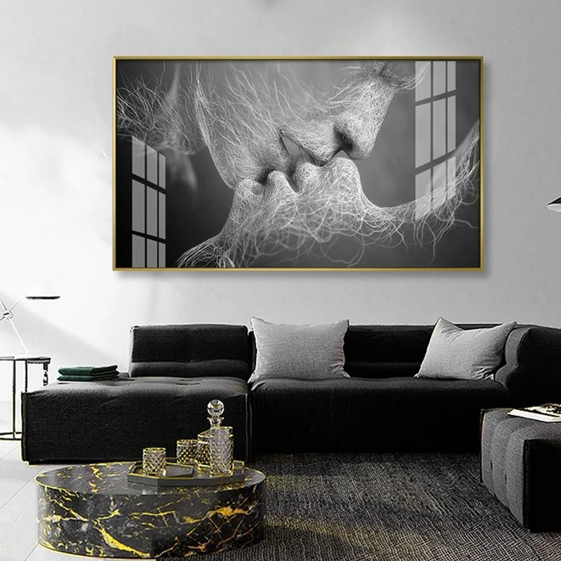 Абстрактный поцелуй любовь плакат холст картина черно-белая стена художественные картины печать галерея гостиная спальня домашние украшения