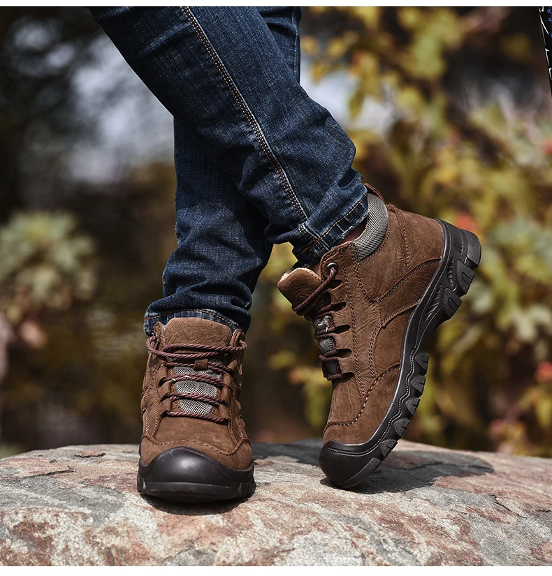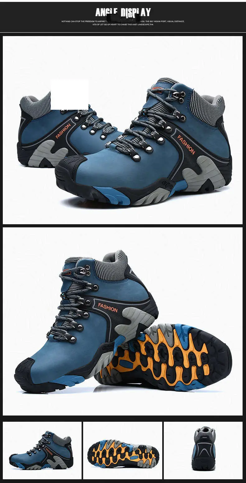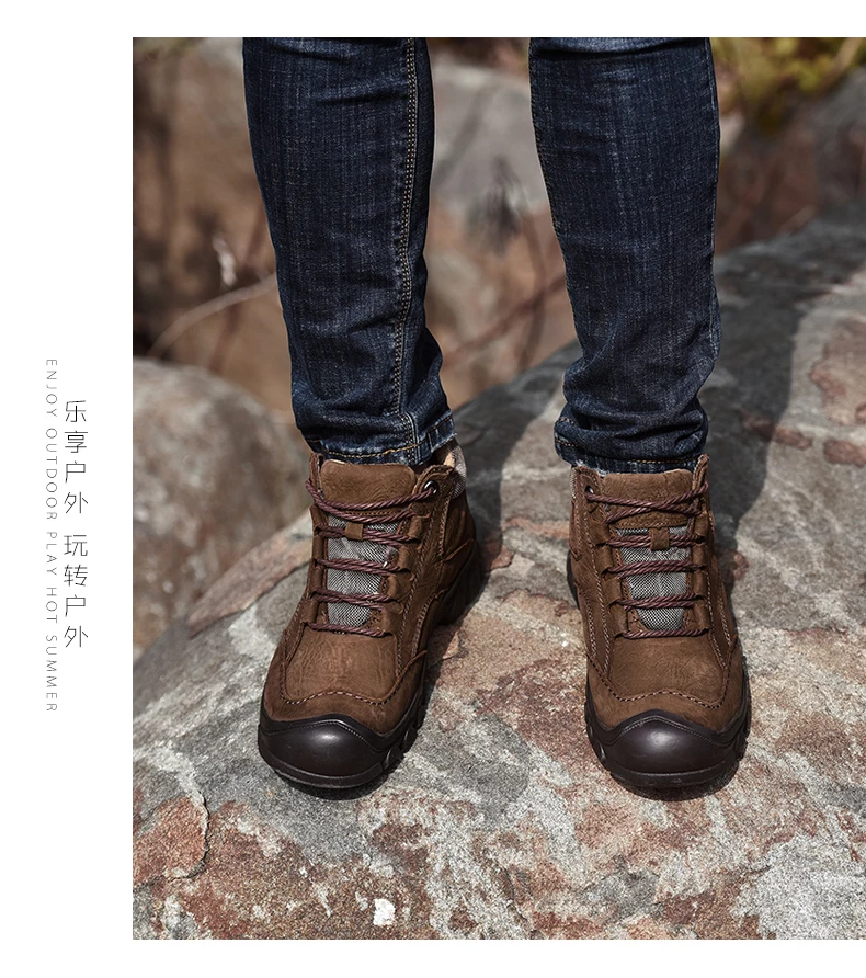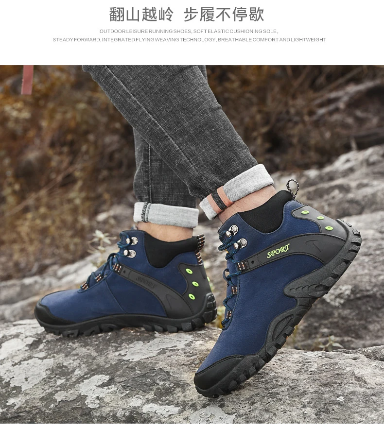 Мужские походные ботинки из натуральной кожи, уличная спортивная обувь, синие, для зимы