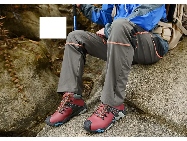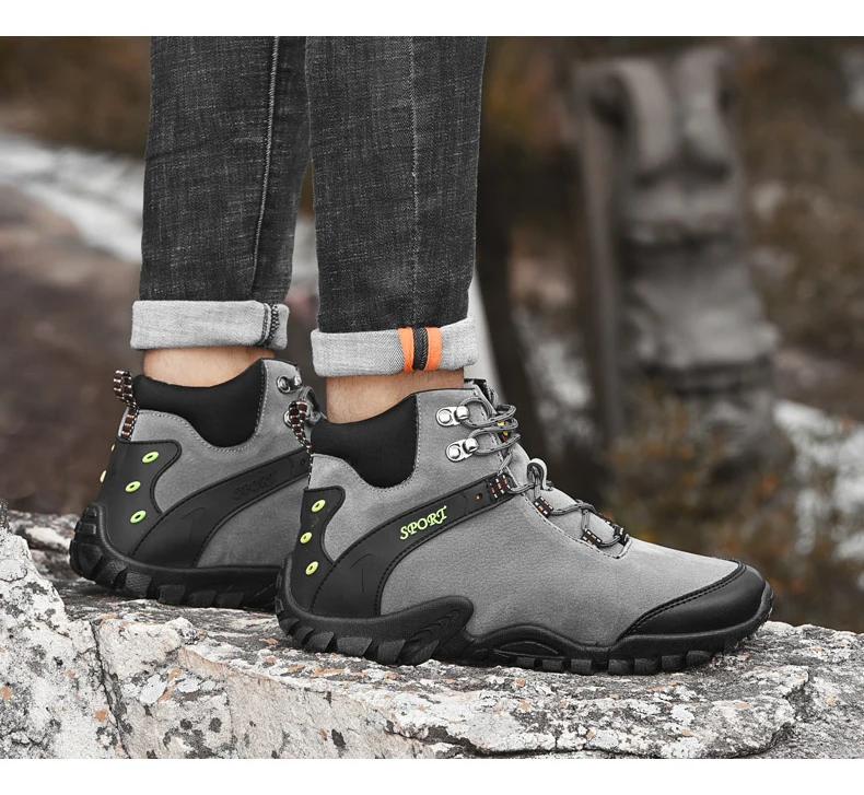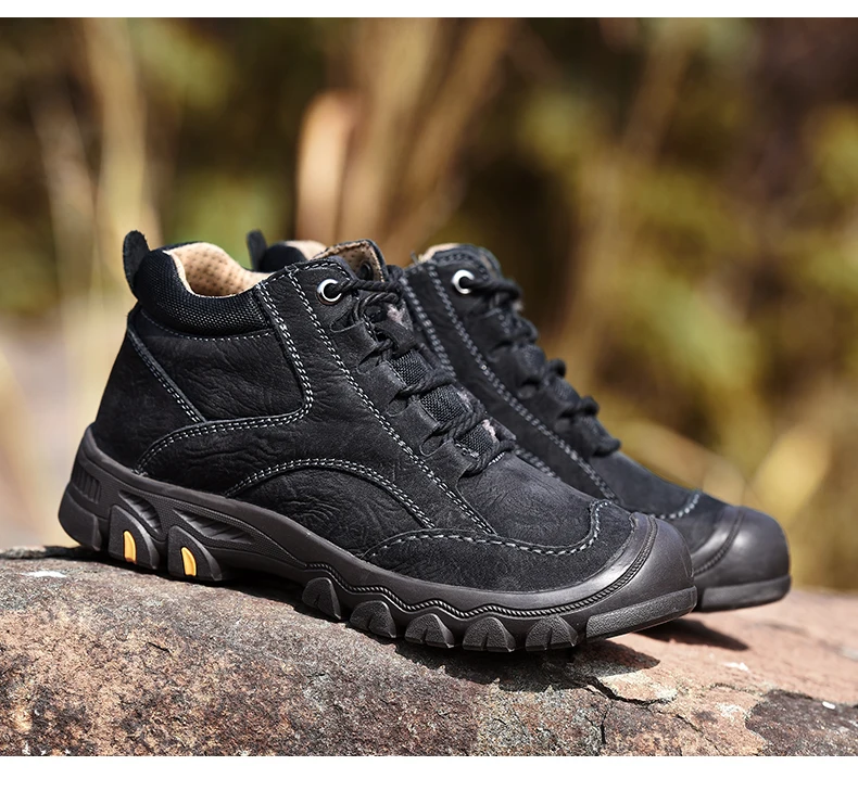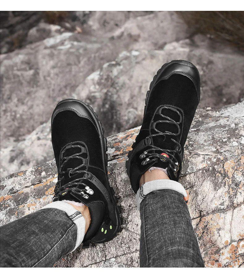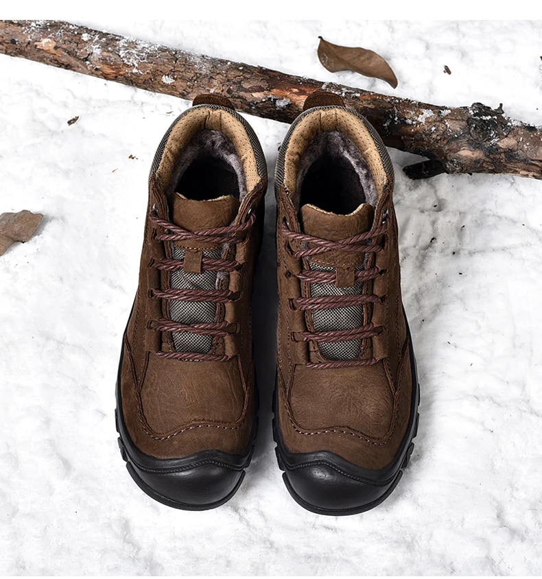 Мужские походные ботинки из натуральной кожи, уличная спортивная обувь, синие, для зимы