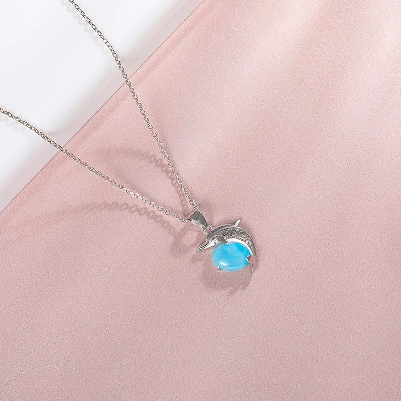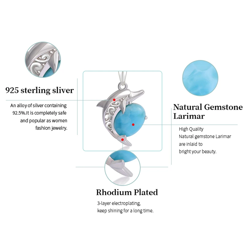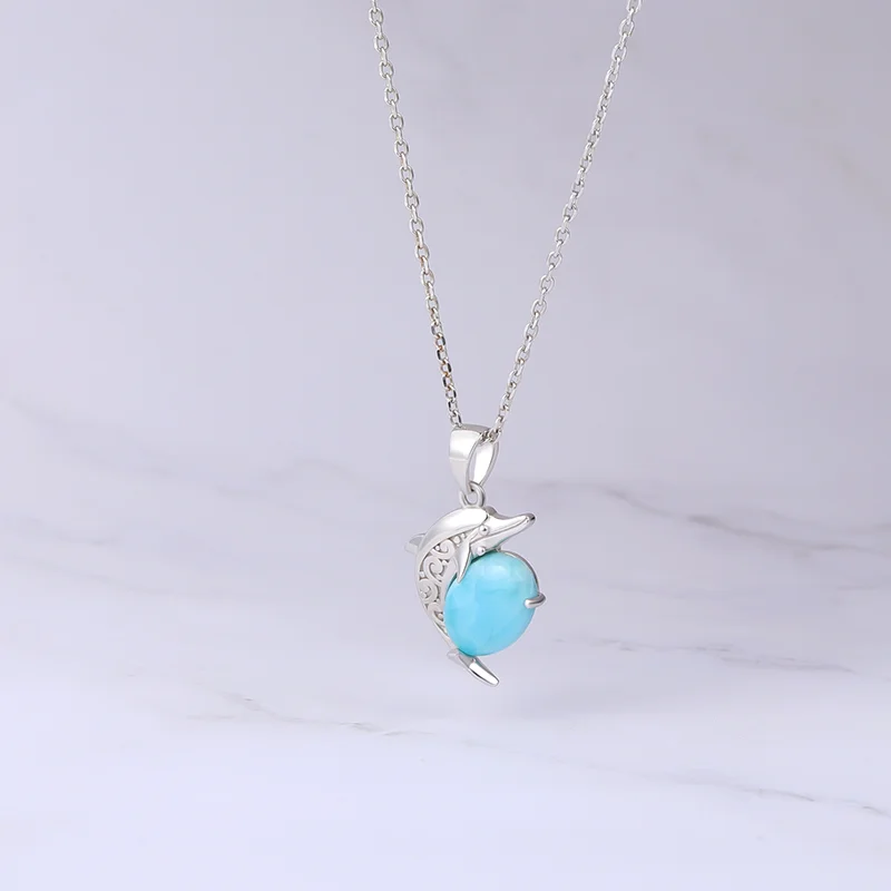 Larimar ювелирные украшения родием 925 стерлингового серебра комплекты ювелирных изделий классический модное ожерелье с кулоном в виде месяца натуральные женские Дельфин Морская жизнь