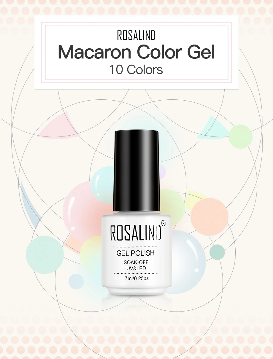 Бренд: ROSALIND Название: гель макарон Объем: 7 мл/бутылка Цвет: 24 цвета s Излеченная: УФ/Светодиодная лампа Особенность: Сделайте ногти более цветными