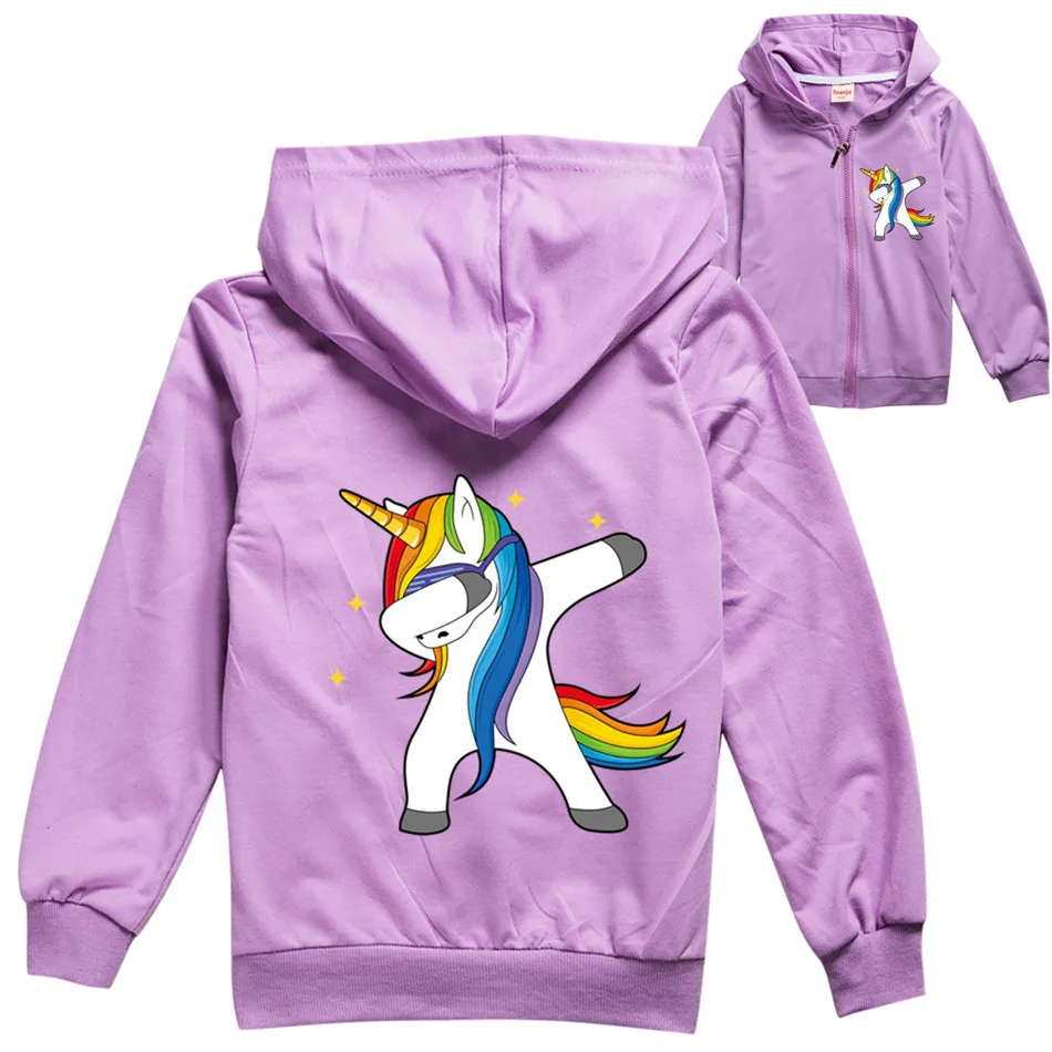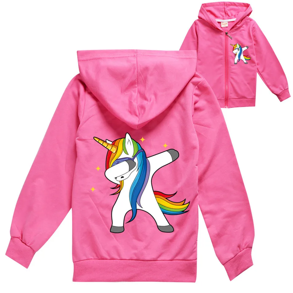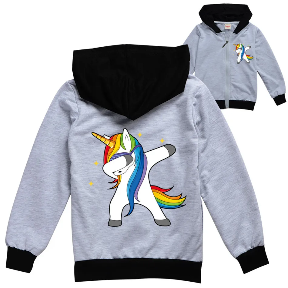 Демисезонная детская модная тонкая хлопковая куртка на молнии с единорогом