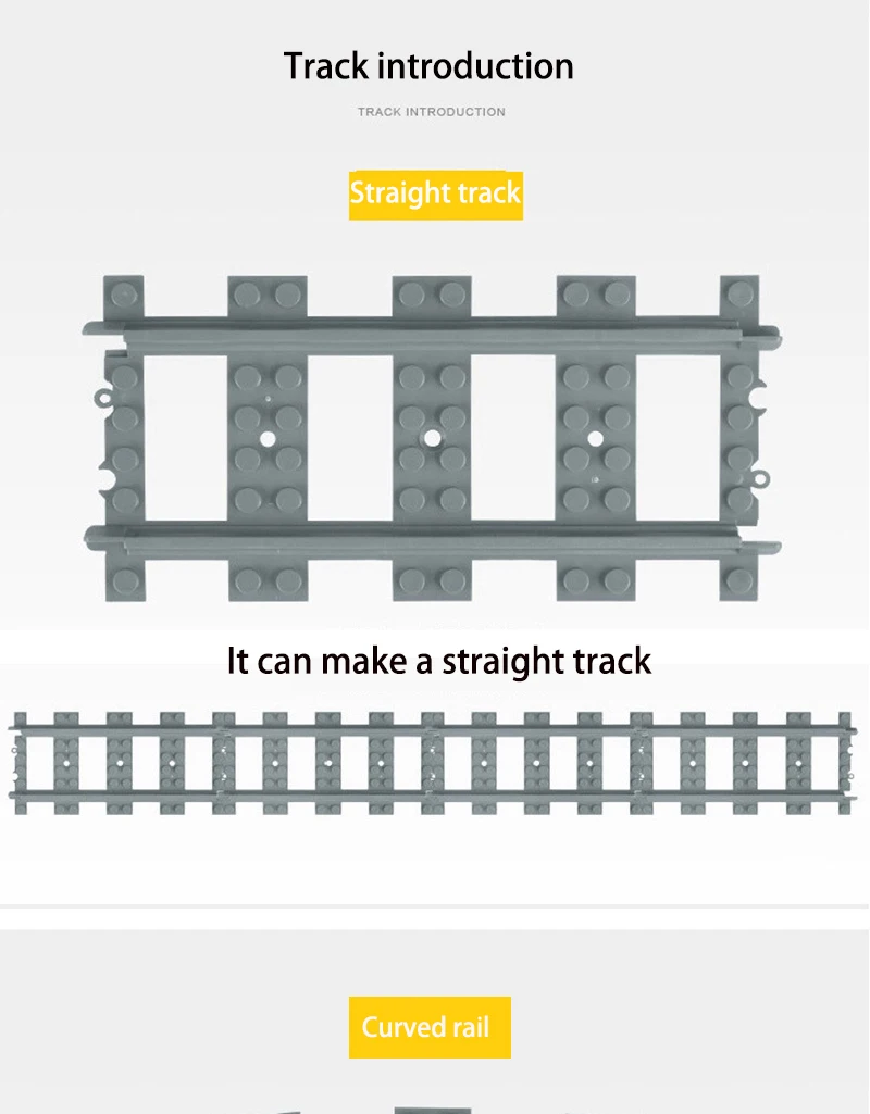 1. Чтобы снизить цену и сэкономить ваши деньги, эти товары без оригинальной коробки, которая заменена на запечатанные пакеты 2. Можно свободно собирать, подходит для различных качественных поездов