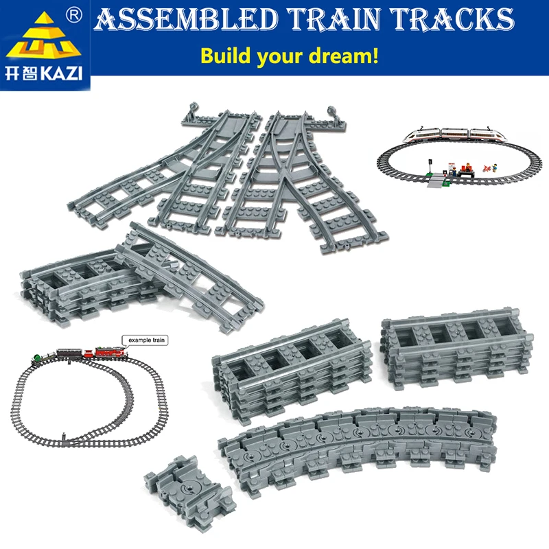 Кази качество DIY городской поезд рельсы прямые и изогнутые наборы треков строительные блоки подходят для различных предметов детские игрушки в подарок