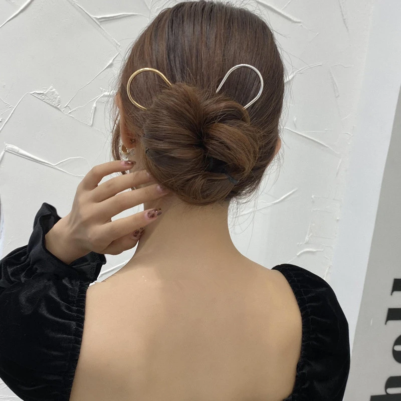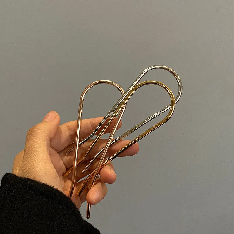 AOMU в Корейском стиле Простые Универсальные Металлические золотые шпильки для волос повязка на голову, модные аксессуары для волос тренд u-образный большой заколка для волос для женщин