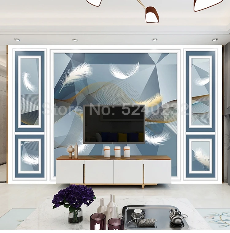 Пользовательские фото Декор Papel де Parede 3D современный абстрактный геометрический перо ТВ фон настенная живопись гостиная обои фрески