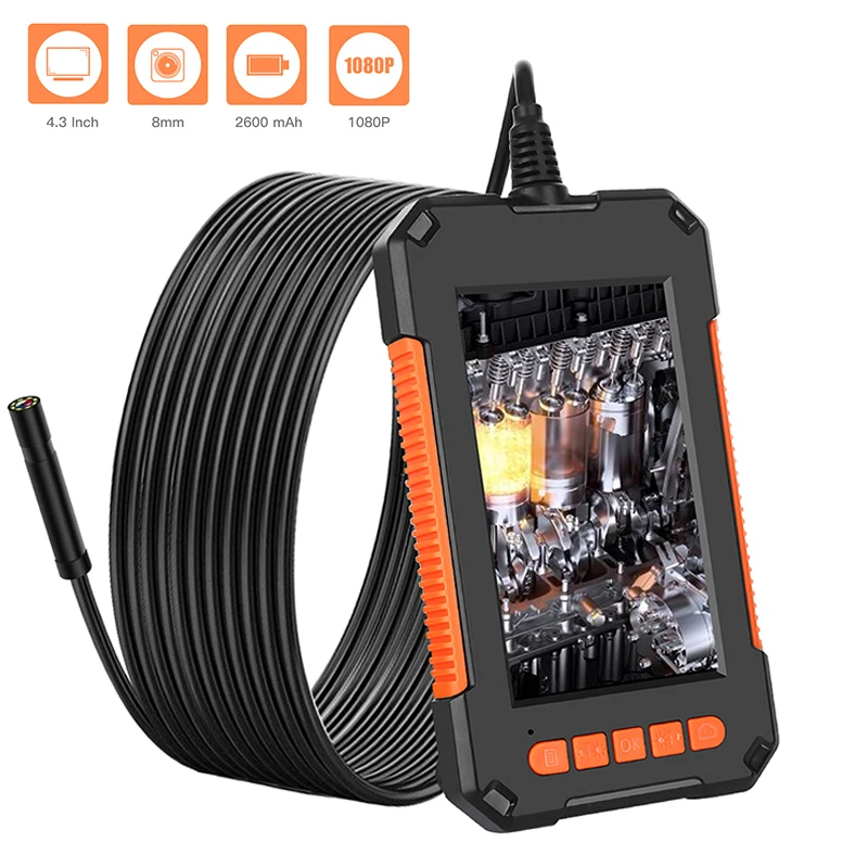 Экран эндоскоп с 4,3 дюймовым экраном. Легко управлять и удобно носить с собой. И нет необходимости загружать приложение. Включение и воспроизведение. Он поддерживает съемку фотографий и запись видео, может легко проверить видео одновременно. Этот продукт оснащен маленьким зондом для камеры диаметром 8 мм. Между тем, он может легко попасть в любое место, где вы не можете прикоснуться и зрение не может достичь. Восемь светодиодных ламп позволяют пользователям получать четкое видение в темной среде.