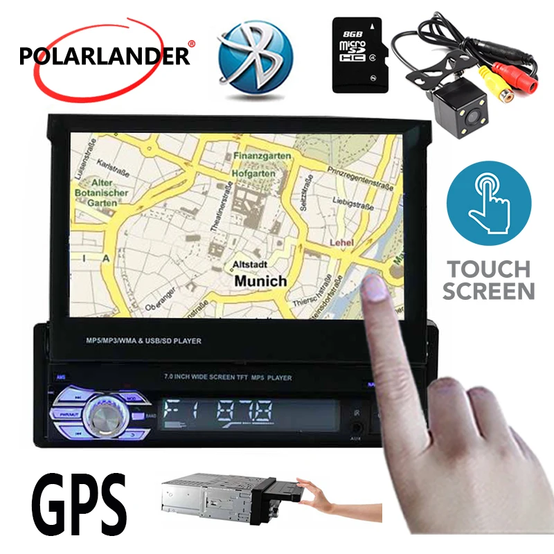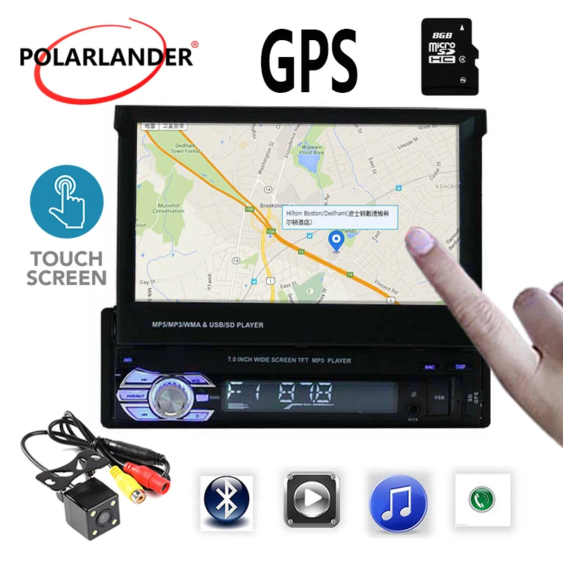 1 Din 7 дюймов сенсорный экран автомобильное радио стерео видео GPS навигация Bluetooth MP4 MP5 TF FM USB с/без зеркало задней камеры ссылка