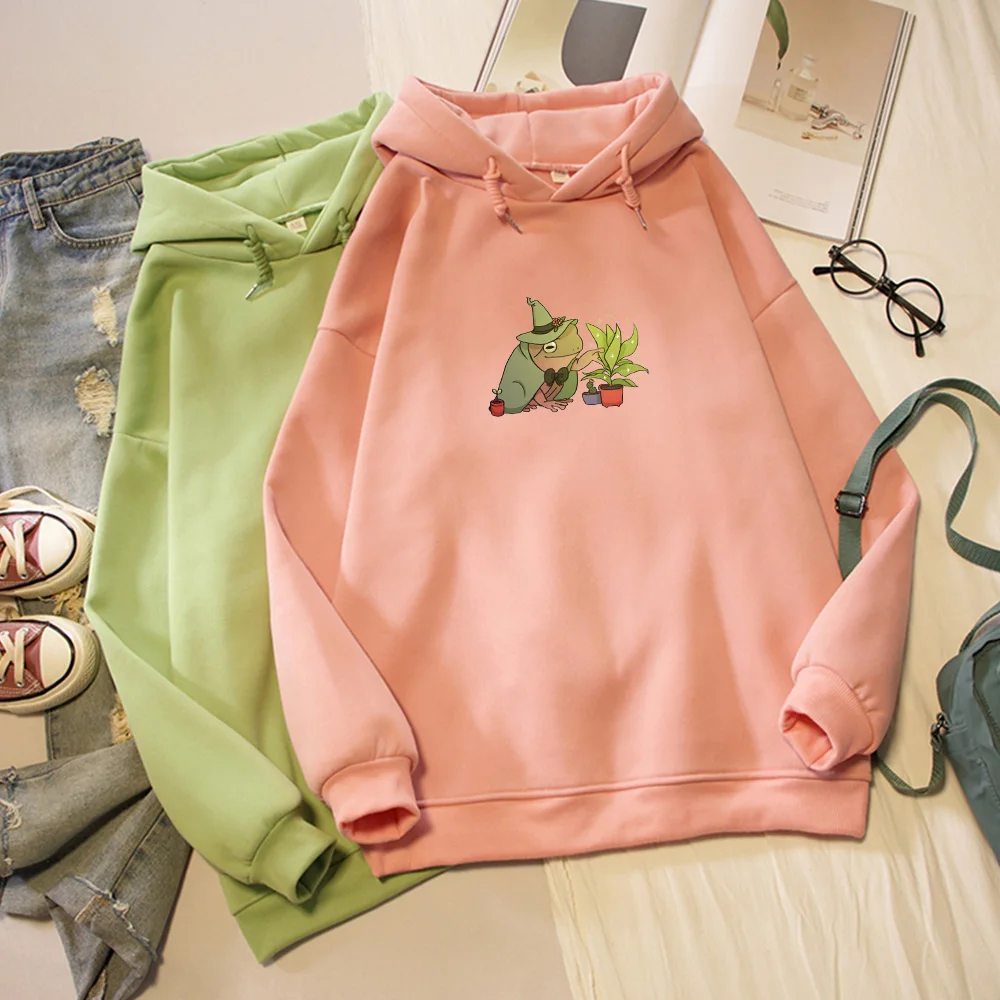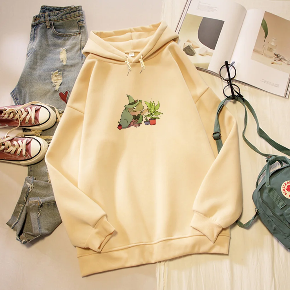 Корейская толстовка с принтом лягушки, Одежда большого размера, Harajuku, толстовка, повседневная, весна-осень, мягкие толстовки для женщин, большие размеры, топ в стиле панк Стиль: Повседневный; Вес: 450 г; Воротник: с капюшоном