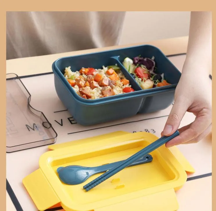 Ланч-бокс однослойный прямоугольный Студенческая коробка для завтрака Ланч-бокс с посудой можно нагревать в микроволновой печи