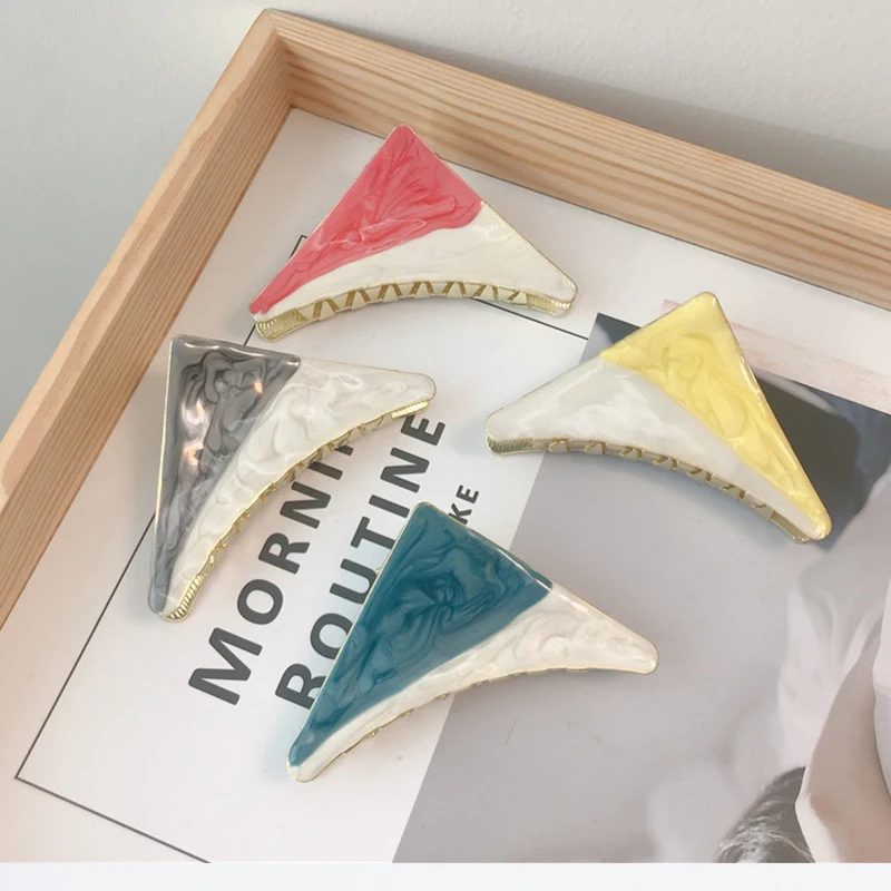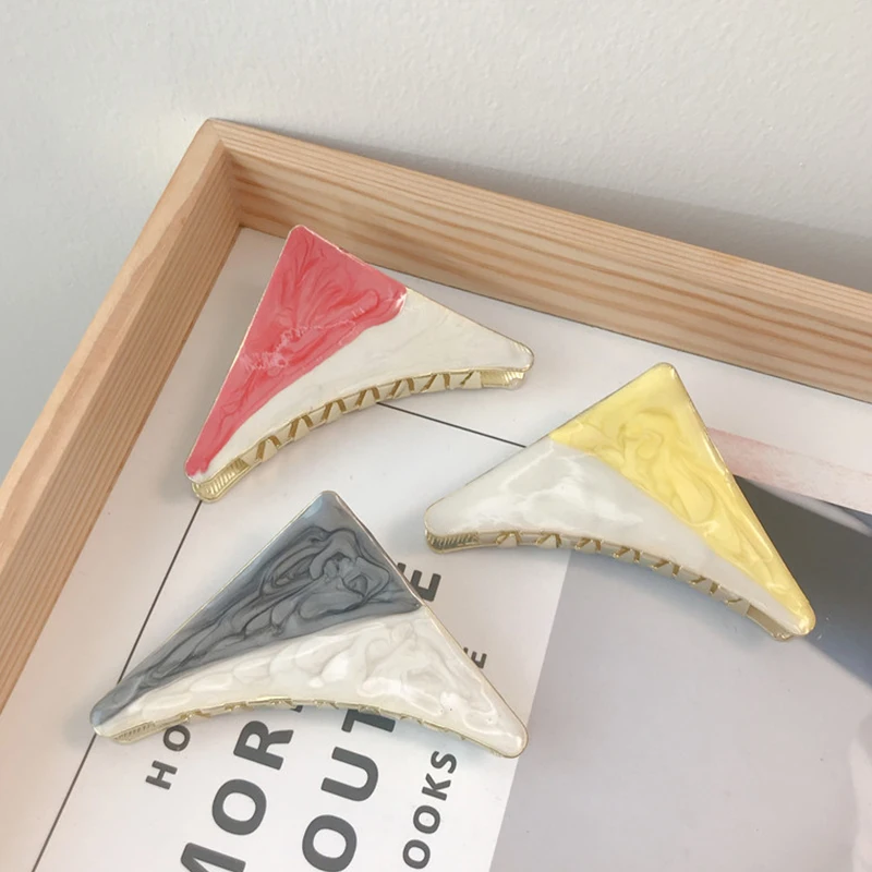 Треугольная окрашенная глазурью металлическая застежка, зажим, Корейская простая и универсальная заколка для волос в виде конского хвоста для девочек, Милая женская заколка для волос