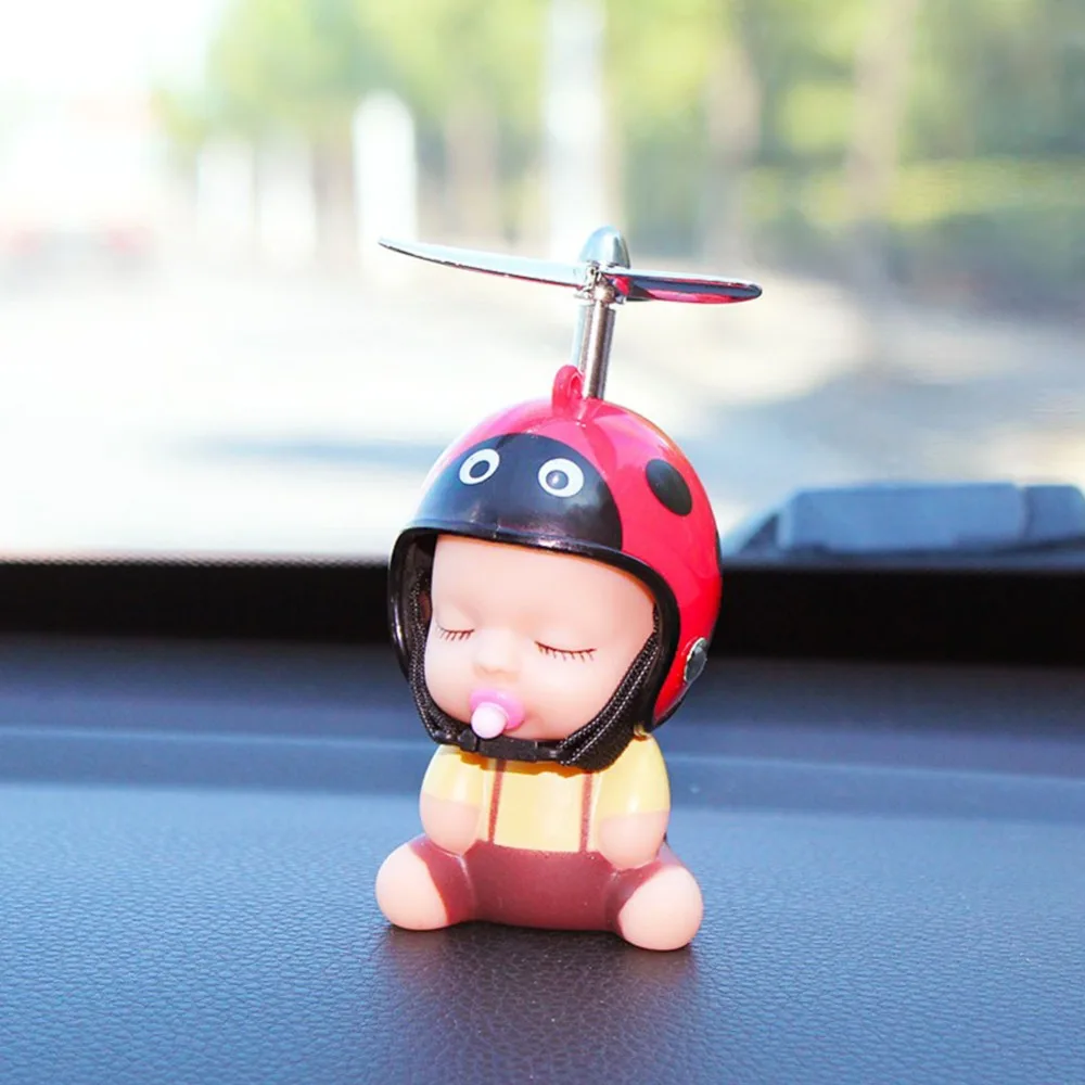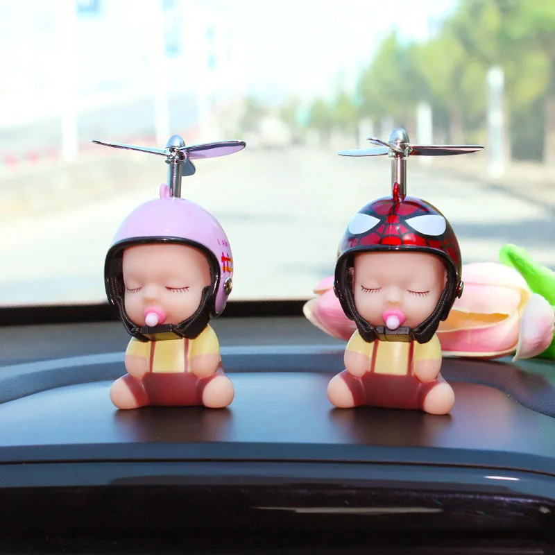 Автомобильная игрушка, соска-пустышка, Детская кукла, милые дети с шлемом + Защитная крышка для шлема + воздушный винт для автомобиля, приборная панель, обзор, зеркало, аксессуары