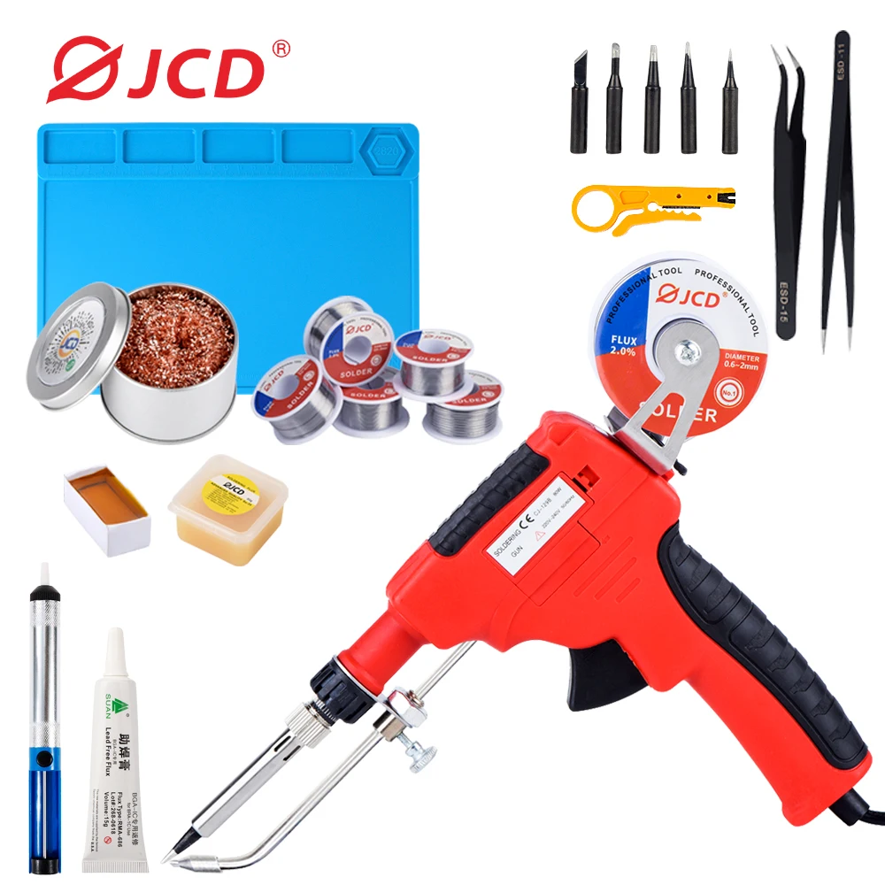 Электрический паяльник JCD, 220 В, 80 Вт, ручной пистолет для сварки и ремонта, в комплекте 50 г олова, без свинца
