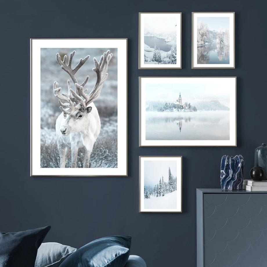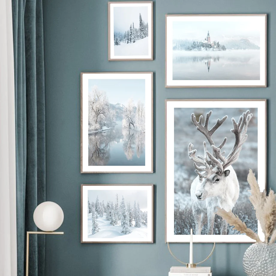 Картина на холсте для стен, картина на зиму, снежное дерево, лес, Северное озеро, постеры и принты, настенные картинки для декора гостиной