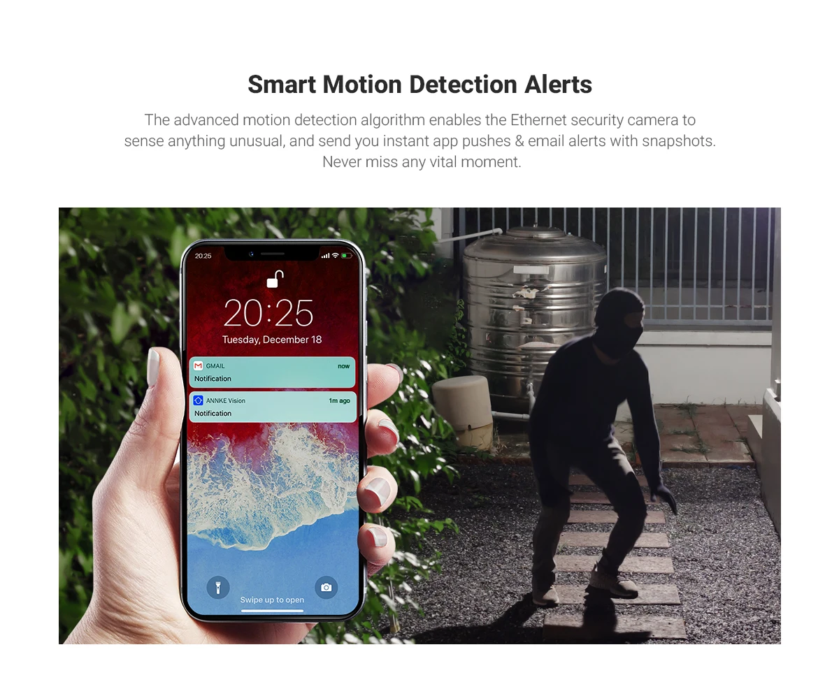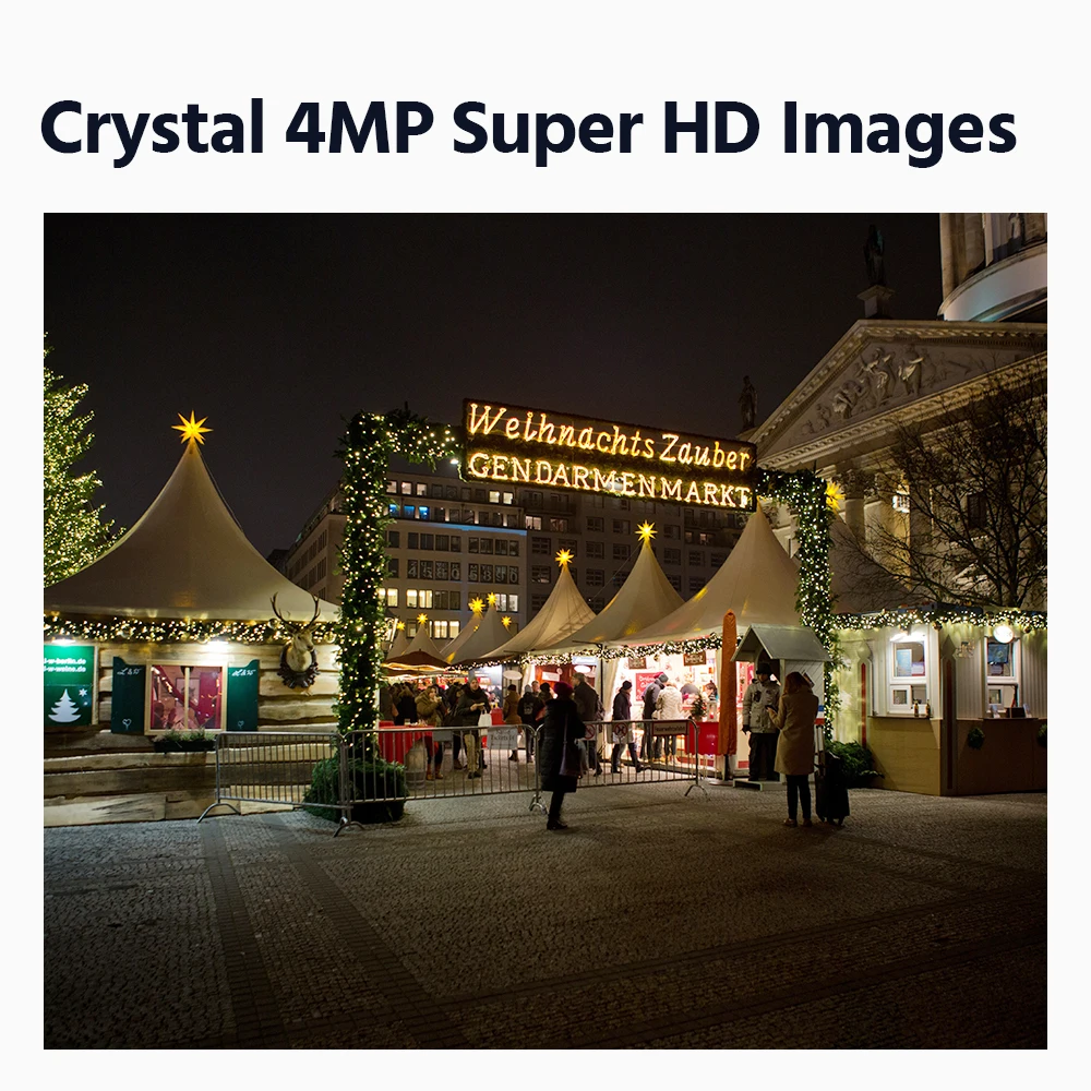 . Полноцветное ночное видение. Кристальные изображения 4MP Super HD. 100 футов теплый дополнительный светильник. Расширенный формат H.265 + видео. 120 дБ True WDR и 3D DNR. Неограниченный контроль, где бы. Умные оповещения об обнаружении движения. Наружный IP67 погодостойкий. Источник питания 12 В постоянного тока или PoE