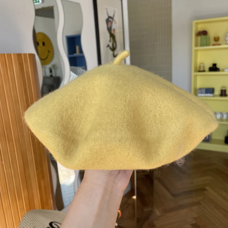 Женский вязаный берет Luna Dolphin, трикотажная Шапка-бини ярких цветов, 90% шерсть, желтого цвета, Осень-зима