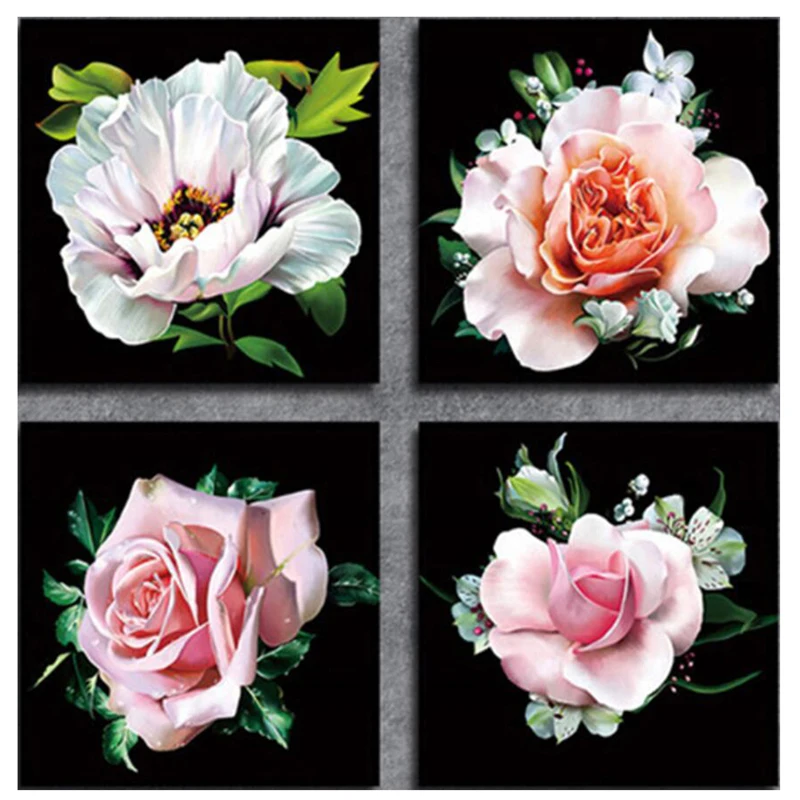4 панели розовых цветков роз мозаичные камни в форме ромба круглый дрель 5D Diy Алмазная Вышивка Свадебные DecorationsZP-4332