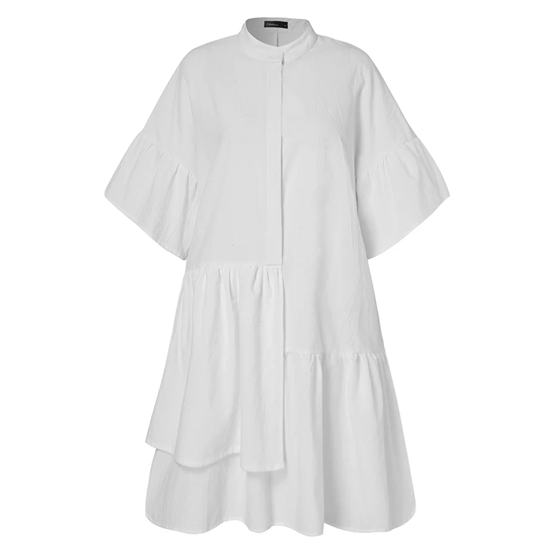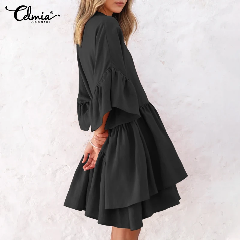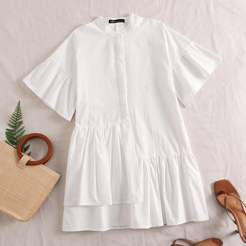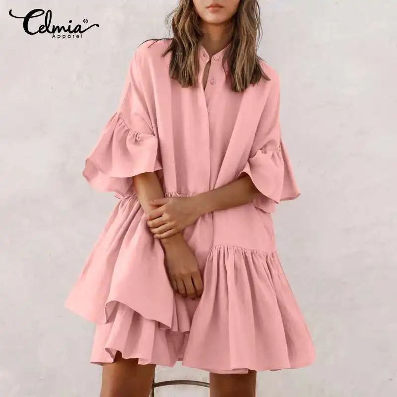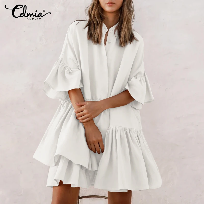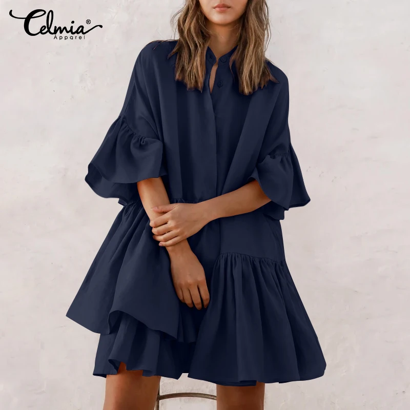 Женское летнее Мини-Платье Celmia для отдыха, модель 2022 года, повседневное однотонное праздничное пляжное платье с полурукавами, халаты на пуговицах