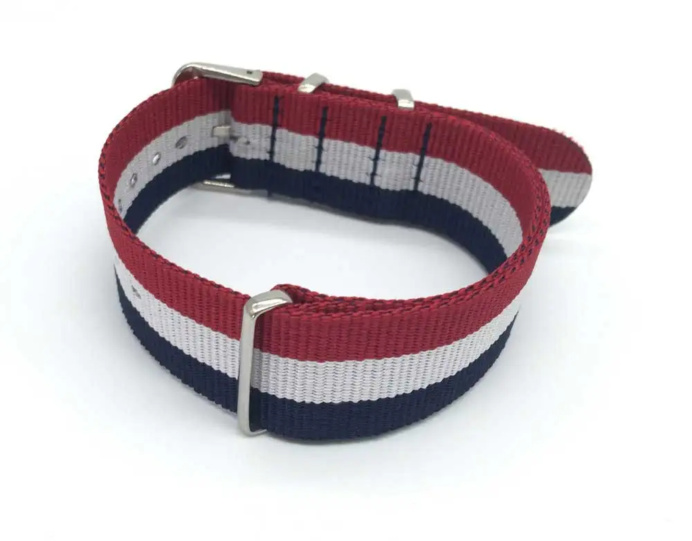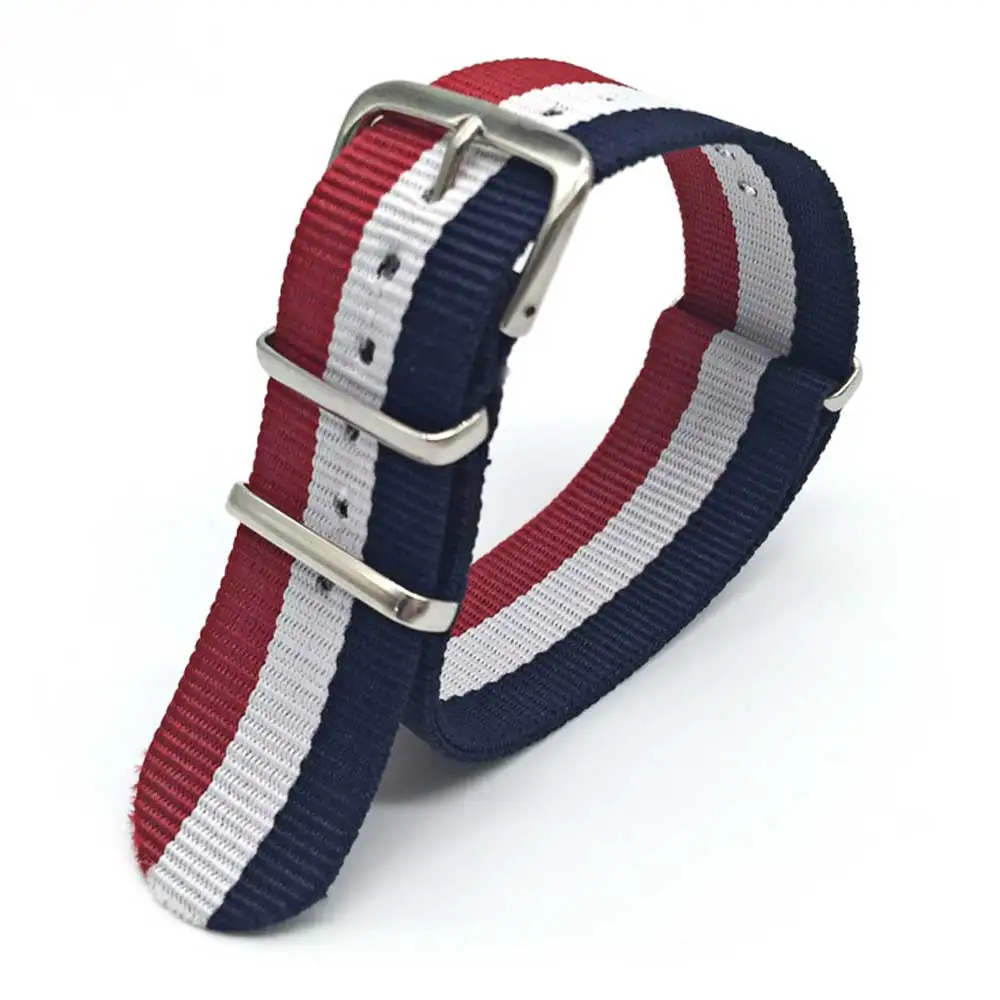 Ремешок сменный в стиле милитари для наручных часов, нейлоновый плетеный браслет в стиле НАТО, красный синий белый 18 мм 20 мм 22 мм, дополнительные цвета