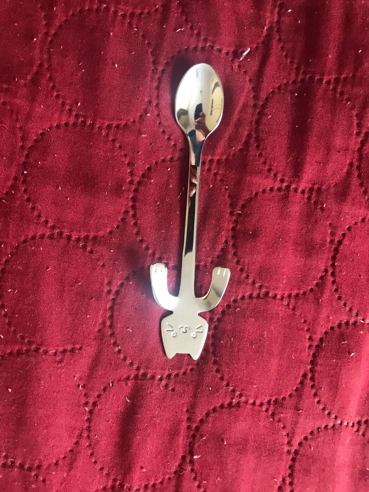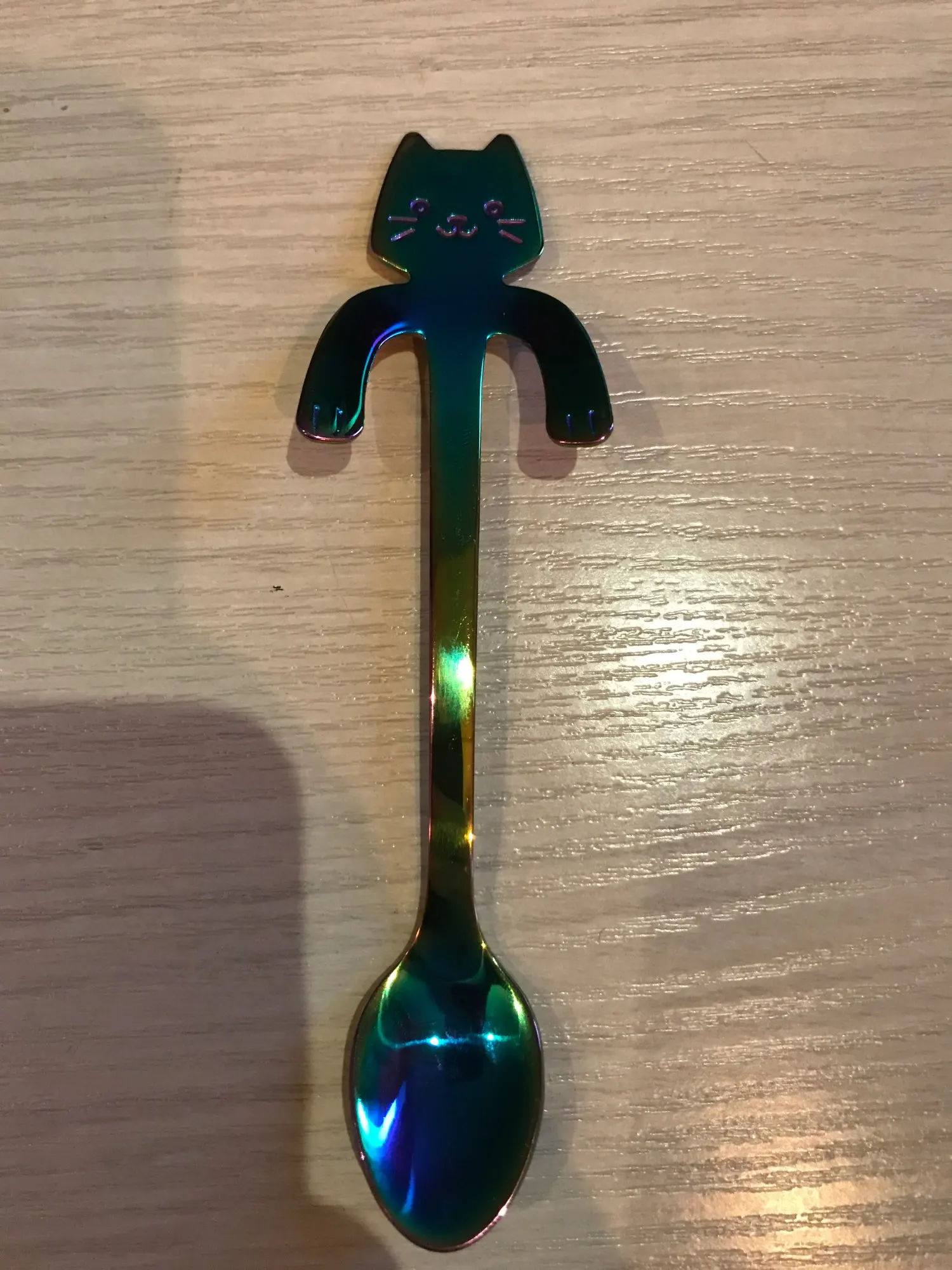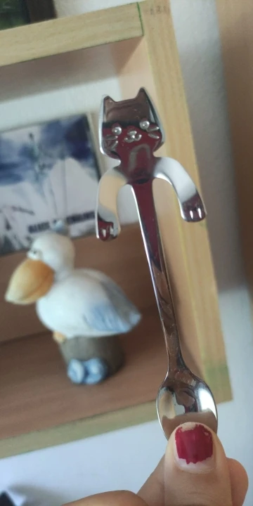 Несколько лет назад я заказал эту ложку catish, и мне понравилось, поэтому я решили заказать ее снова! Эта ложка очень милая и также очень полезная, потому что вы можете использовать ее как обычную. Очень приятно, когда кошка остается на краю чашки, просто подождите вас, ха-ха.