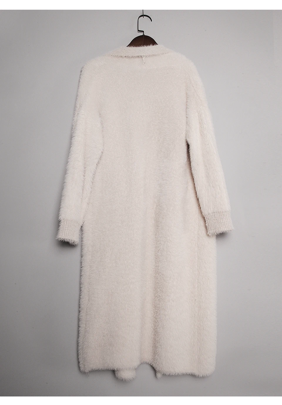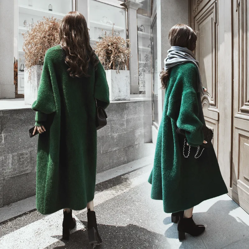 Мягкий синтетический норковый толстый теплый длинный свитер, кардиган, корейское Женское зимнее пальто, вязаный длинный Винтажный Зеленый кардиган с рукавом летучая мышь