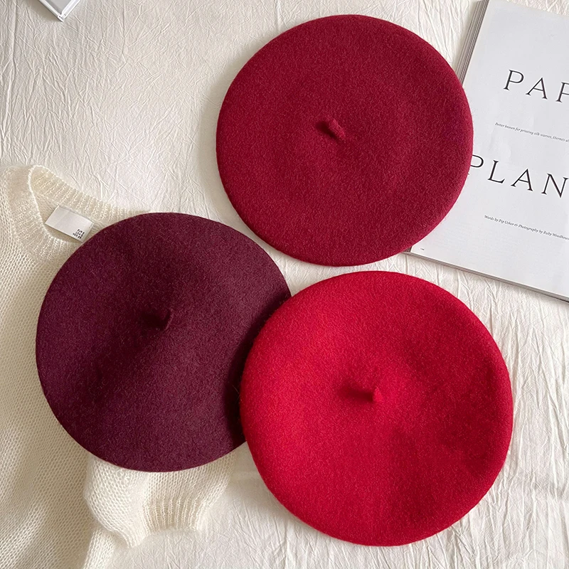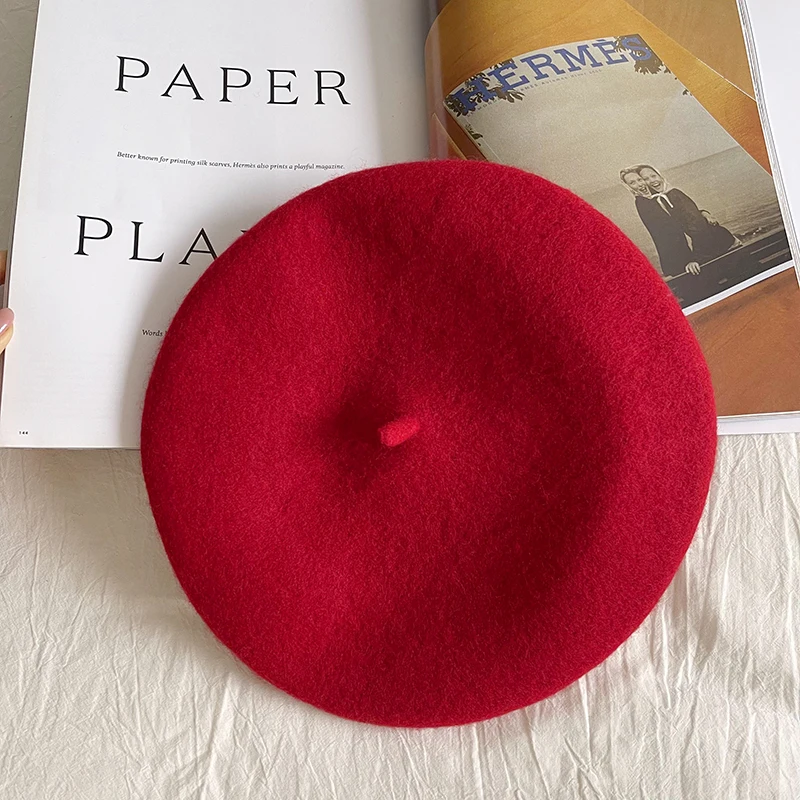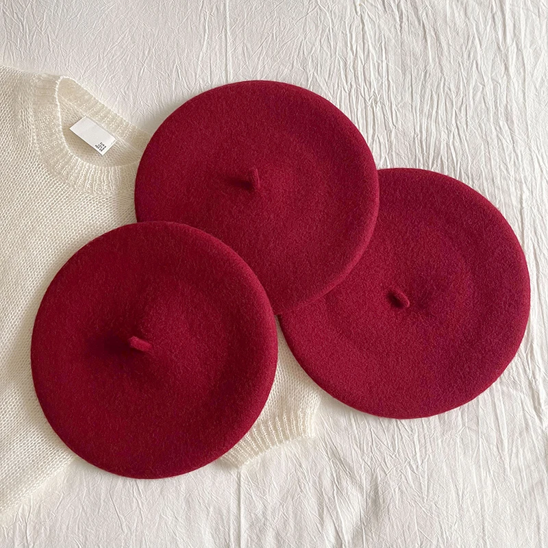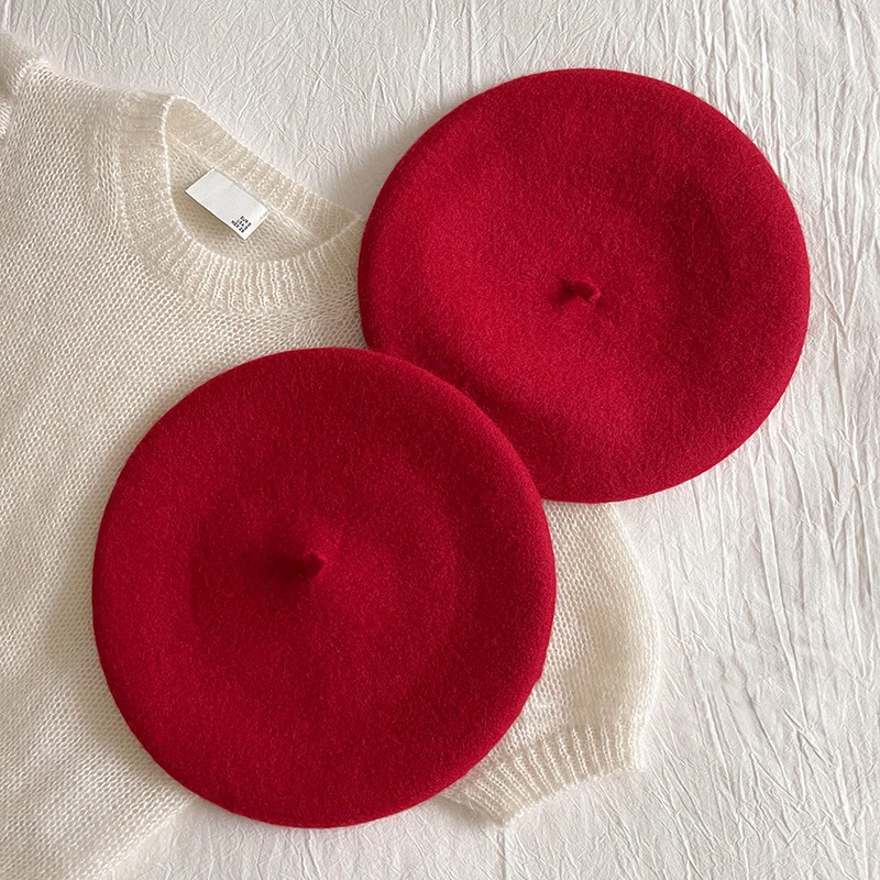 Женский вязаный берет Luna Dolphin, трикотажная Шапка-бини ярко-красного цвета из 90% шерсти, Осень-зима
