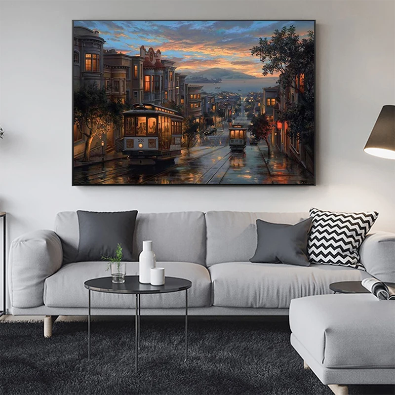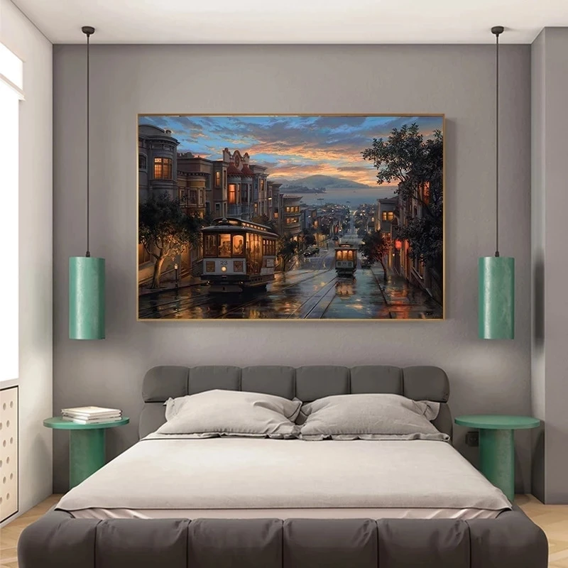 Современная Картина на холсте с изображением ночного города, пейзаж, плакаты и принты, квадратные картины на стену, картина для гостиной, украшение для дома
