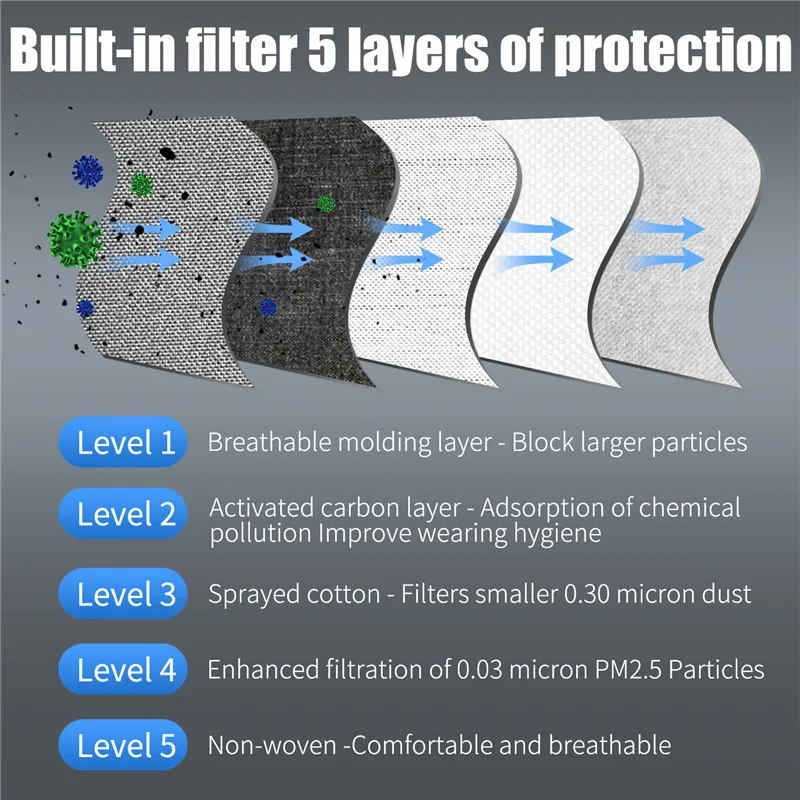 1. С фильтром с активированным углем, эффективно предотвращает попадание вредных веществ в нос 2. Изготовлен из ледяного шелка и лайкры, прохладный и дышащий, устойчивый к ультрафиолетовому излучению 3. Уличная необходимая, унисекс, эффективная защита