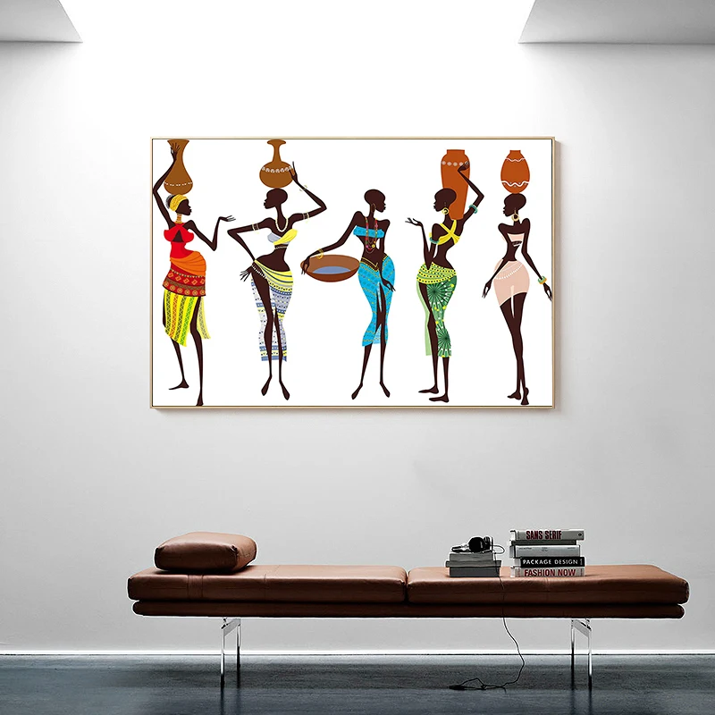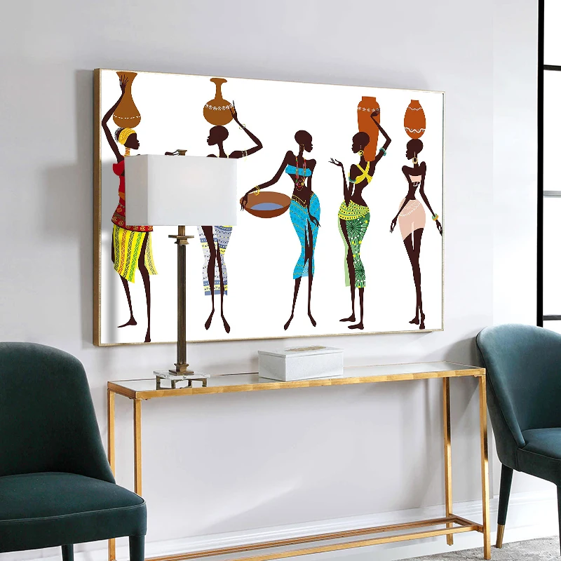 Африканская черная Женская фигурка, Картина на холсте в национально...