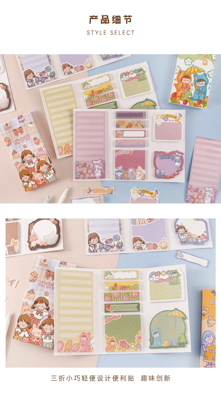 : Mohamm складывающийся втрое блокнот для заметок на клейкой основе Набор наклеек закладки, памятки коврик липкой бумаги Страница флаги селфи-Палка с Tab Закладка для книги